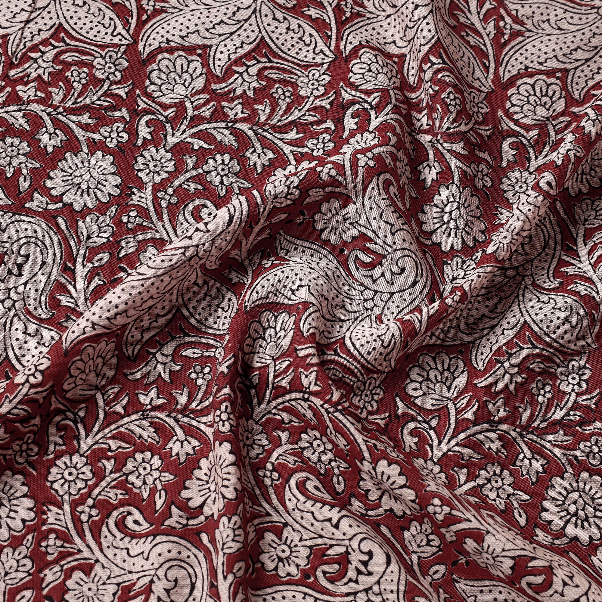 Red - Natural Dyed Cotton Hand Block Bagh Print Fabric 14