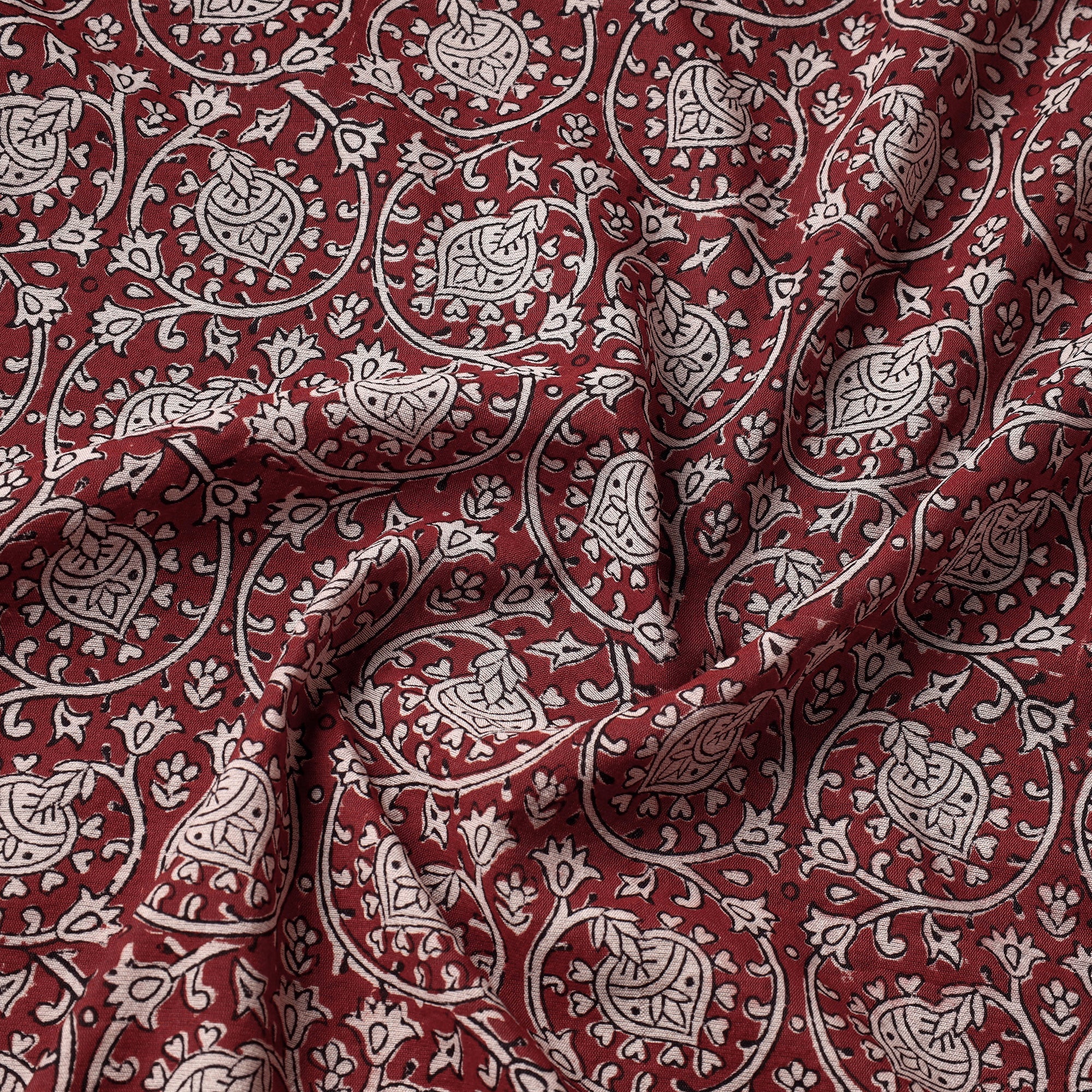 Bagh layouts are dramatic with the use of black and red alternately on a white background. Its production process is manually painstaking. Though the techniques and designs are age-old the prints retain their contemporary appeal.