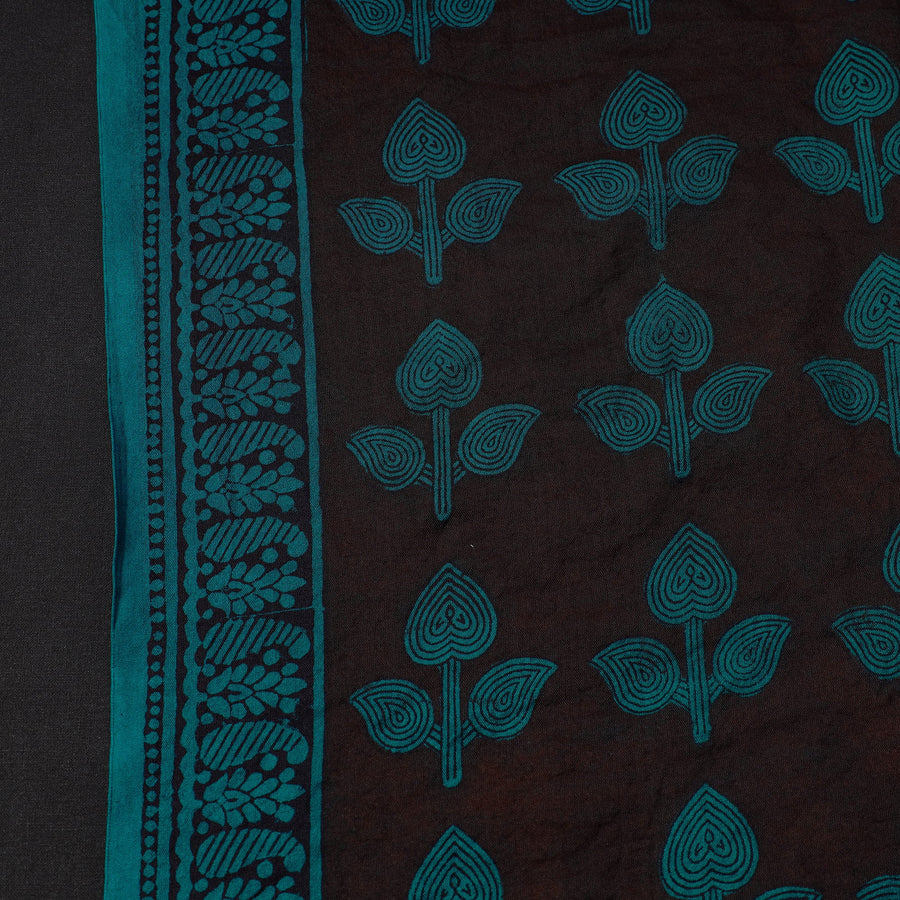 Brown - Bagh Block Print Modal Silk Brooch Scarf 92