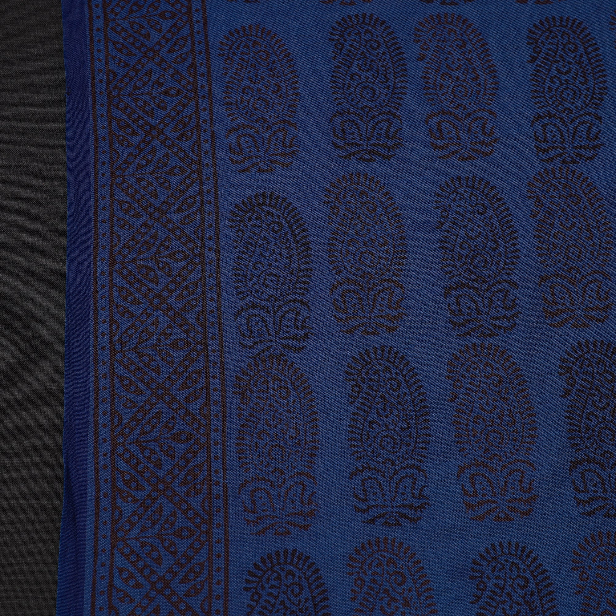 Brown - Bagh Block Print Modal Silk Brooch Scarf 92
