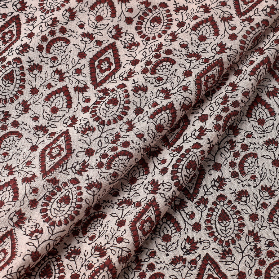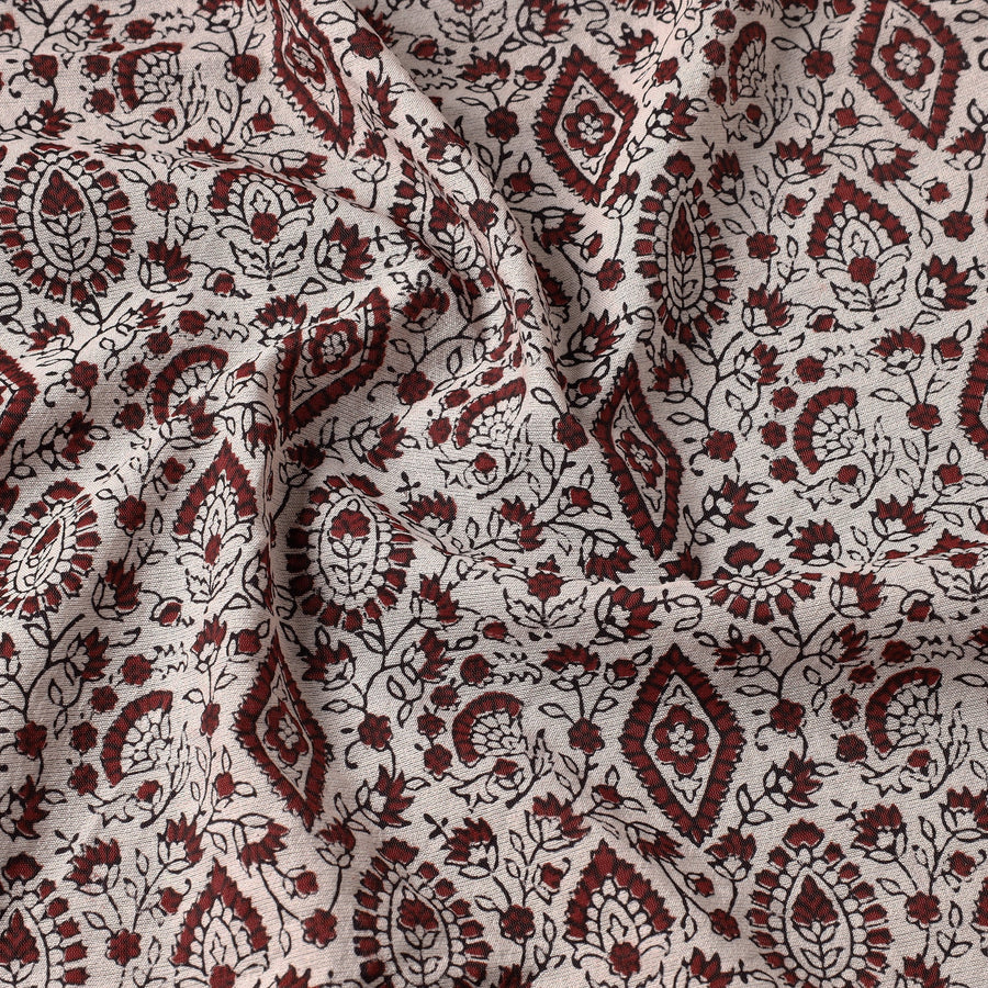 Fine-quality white bagh hand block printed chanderi silk cotton handloom fabric. Meticulously made by master artisan Umar Faruk Khatri, who practices the age-old art of Bagh block printing in the Dhar district of Madhya Pradesh, this fabric is a testament to skilled artistry. Using natural dyes and following traditional processes, each motif and pattern on the fabric is carefully hand block printed, creating a unique and exquisite design. The intricate and unique patterns make this fabric a perfect choice for a variety of projects, such as clothing, home decor, and accessories.