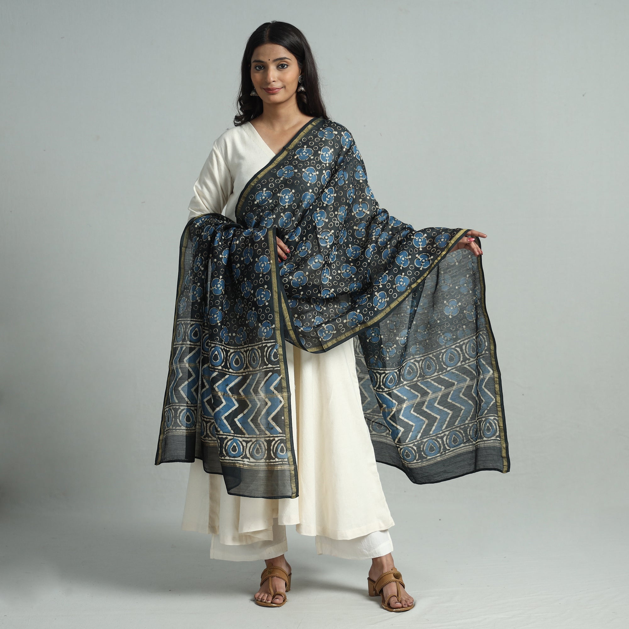 This pipad hand block printed dupatta with zari border is made from chanderi silk-cotton known for its gossamer looks and amazing feel. The use of natural dyes adds to the quality of the product, making it eco-friendly and safe for you to wear. It's made using a traditional mud-resist process by Chhipa Azhar, a renowned artisan from Pipar, Rajasthan. The process involves using mud to create a resist on the fabric, which is then block-printed with intricate designs using a wooden block. The result is a beautifully crafted dupatta that is unique and reflects the rich cultural heritage of Rajasthan.