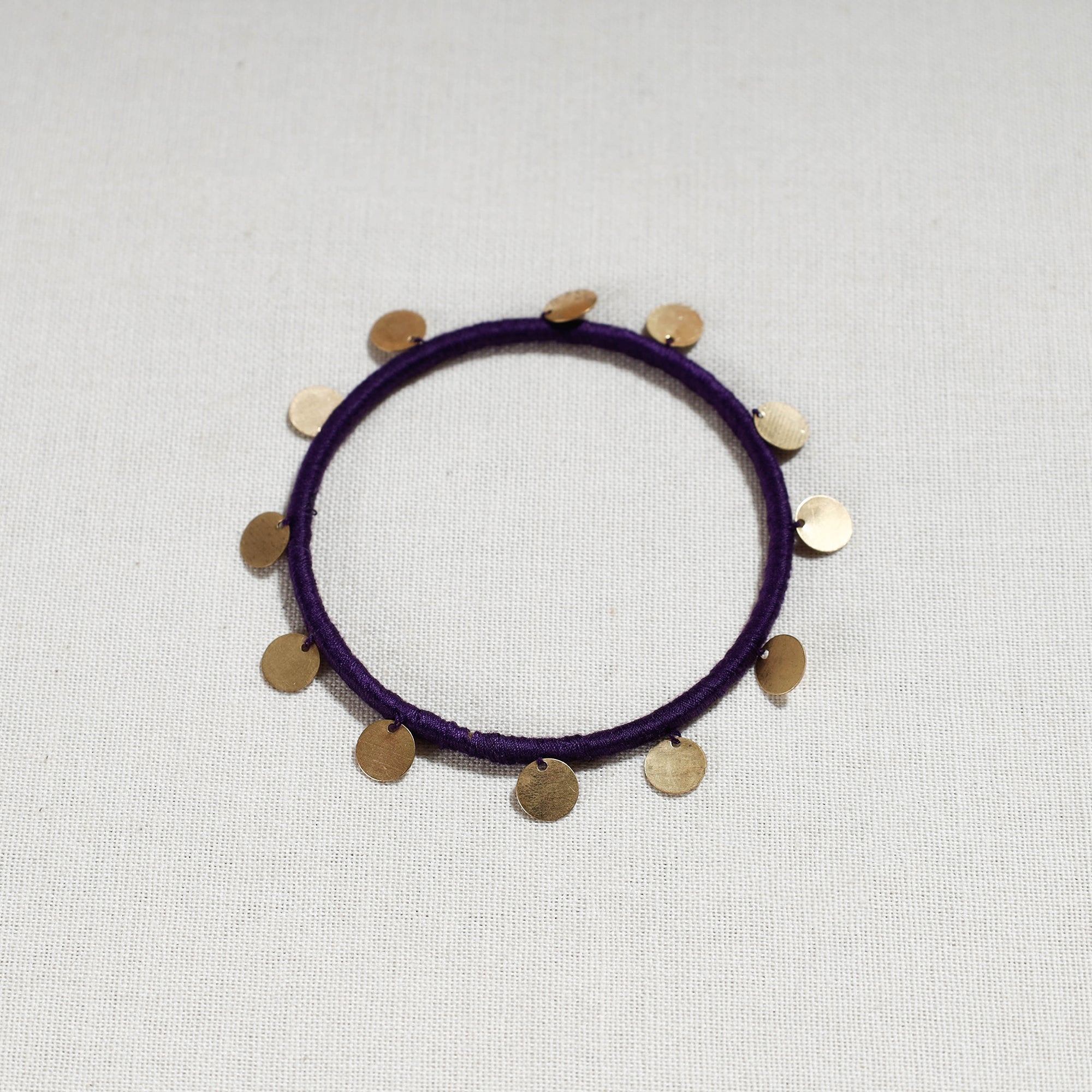Purple patwa bangle is made from thick weaves of thread and sequin work, handcrafted by the master craftsmen Kailash Patwa. Patwa is a thread craft that originated in Rajasthan and is now practised in parts of the state. Patwa is derived from the Hindi word 'pat,' which means silk, and those involved in the silk and cotton thread business are known as Patwas.