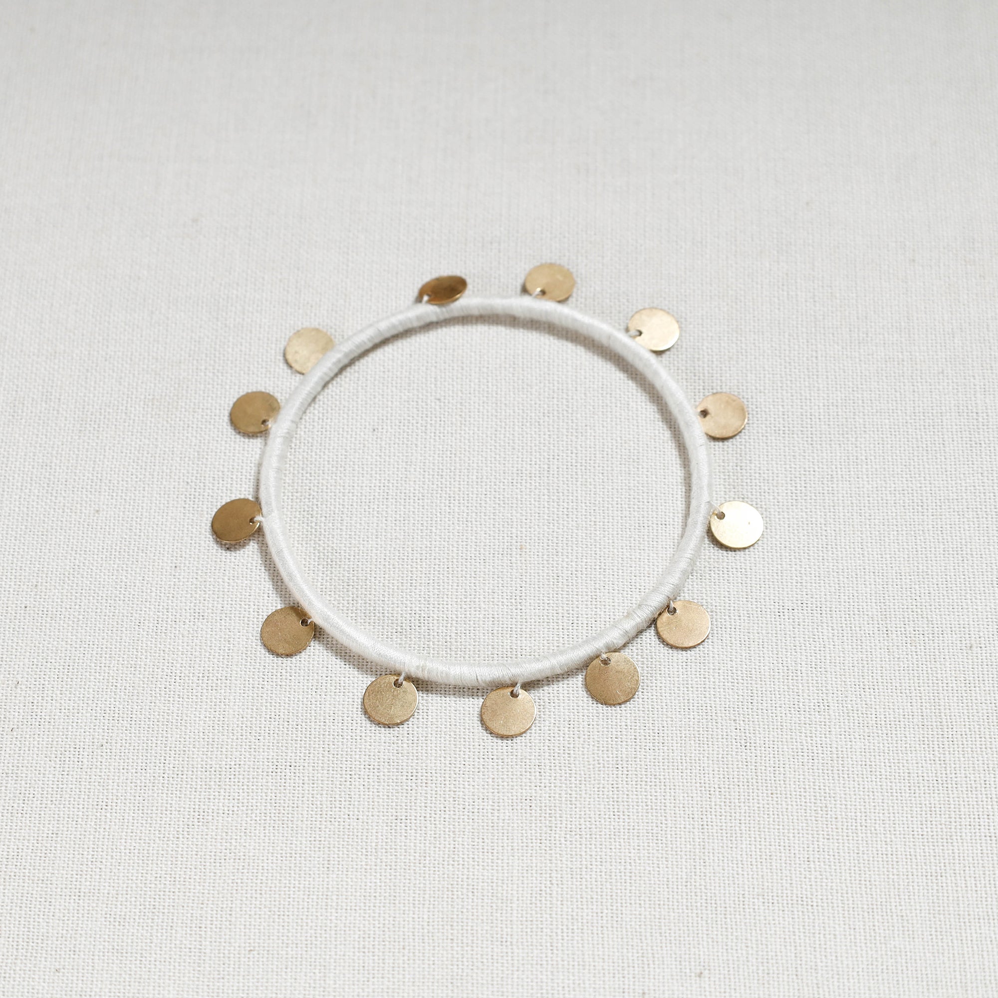 White patwa bangle is made from thick weaves of thread and sequin work, handcrafted by the master craftsmen Kailash Patwa. Patwa is a thread craft that originated in Rajasthan and is now practised in parts of the state. Patwa is derived from the Hindi word 'pat,' which means silk, and those involved in the silk and cotton thread business are known as Patwas.