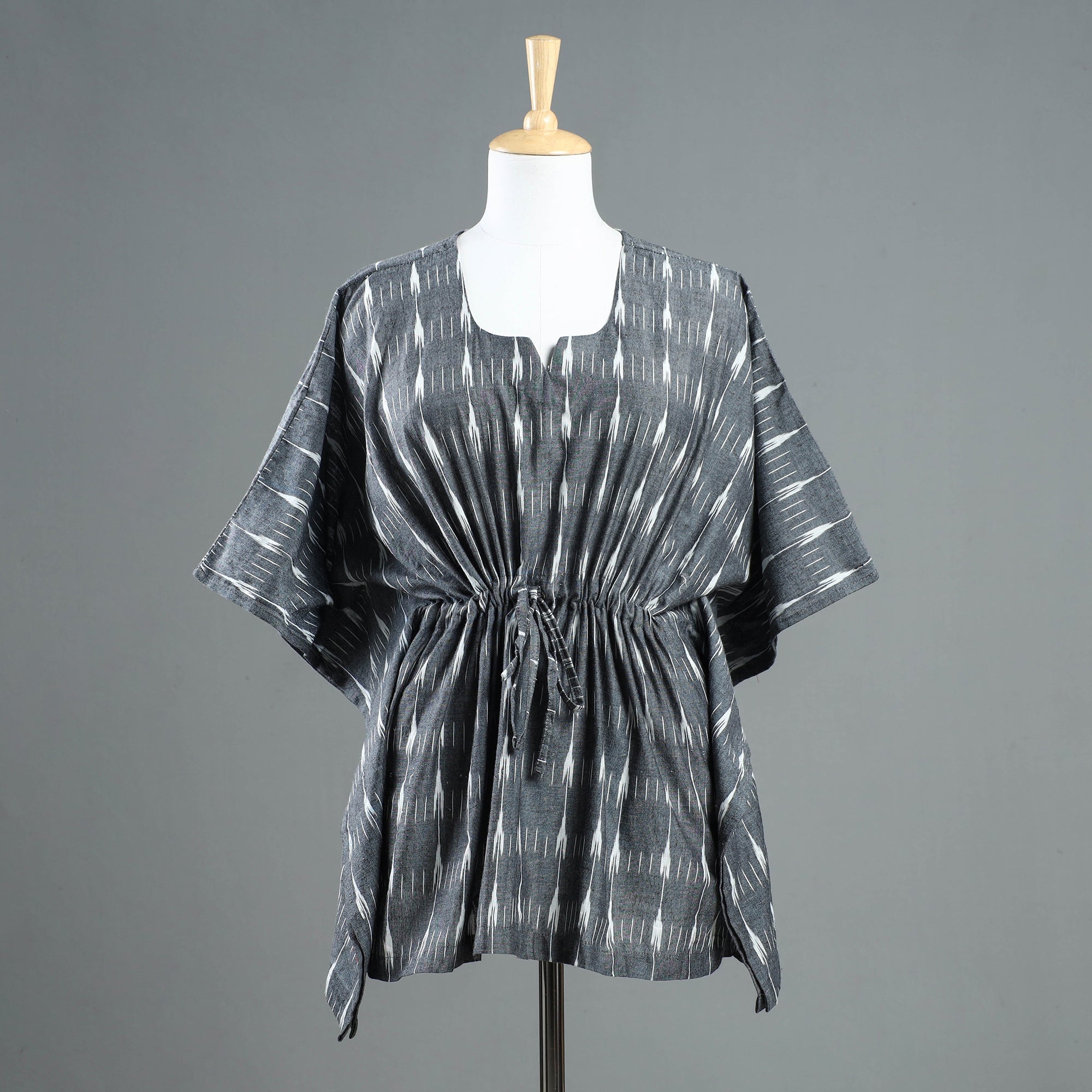 • Grey - pochampally ikat cotton kaftan with tie-up waist