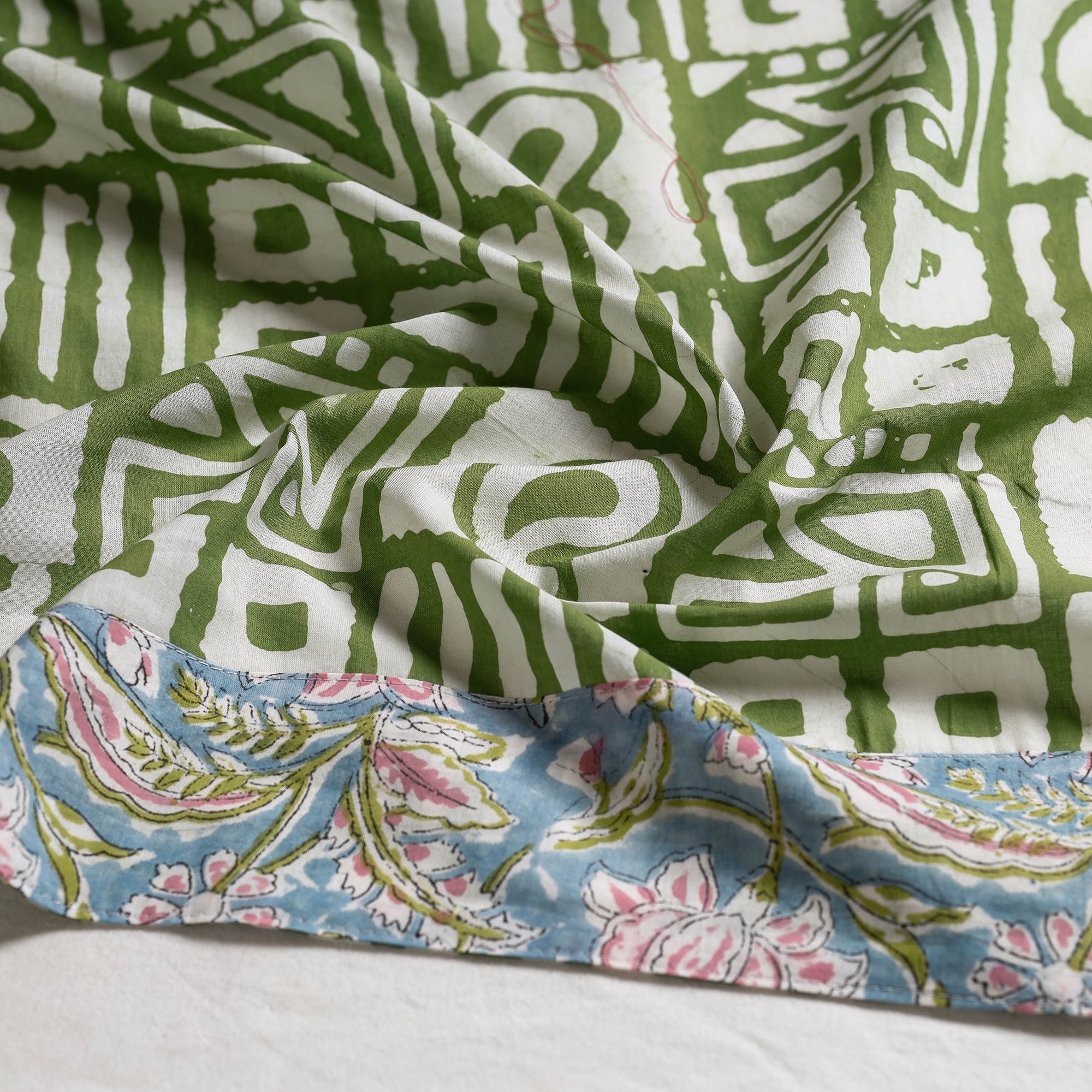 Fine quality green hand batik printed blouse material, expertly crafted from of high-quality cotton material and adorned with traditional handmade textiles of India. This versatile mix and match blouse material is perfect to pair with any saree, adding a touch of elegance to your ensemble. Made with the finest quality materials, this blouse material ensures comfort and style, making it a must-have addition to your wardrobe.