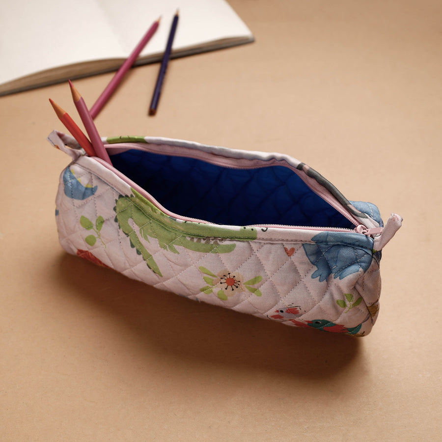 Fine quality handcrafted quilted multipurpose pencil pouch made from cotton fabric, It is hand quilted by the women of Purkal Stree Shakti Samiti, Dehradun.