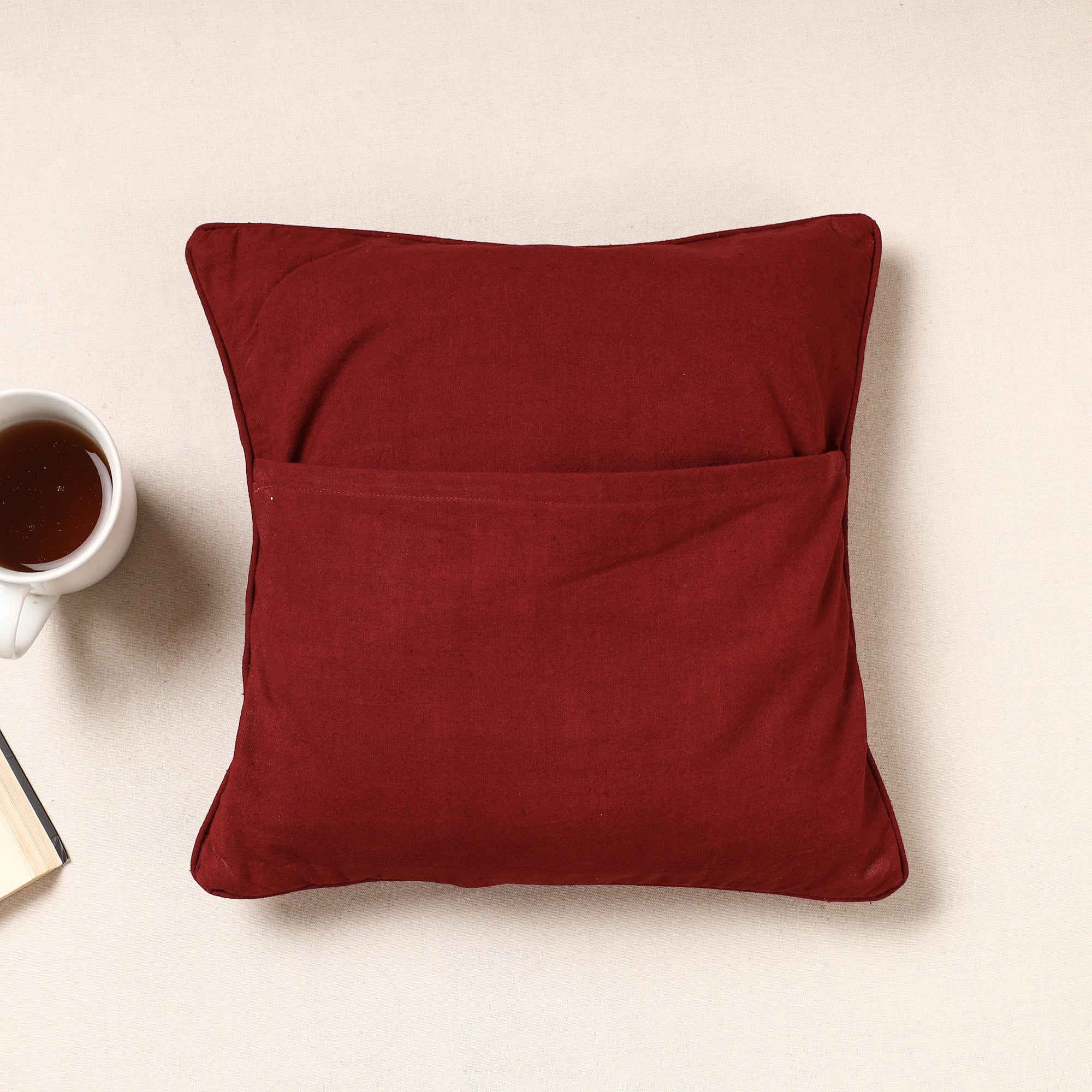 Fine quality maroon pakko hand embroidery mirror work cotton cushion cover. This cushion cover is made from cotton fabric with beautiful Pakko embroidery by artisans of Kala Raksha. Paako literally solid, is a tight square chain and double buttonhole stitch embroidery, often with black slanted satin stitch outlining. The motifs of paako, sketched in mud with needles, are primarily floral and generally arranged in symmetrical patterns.