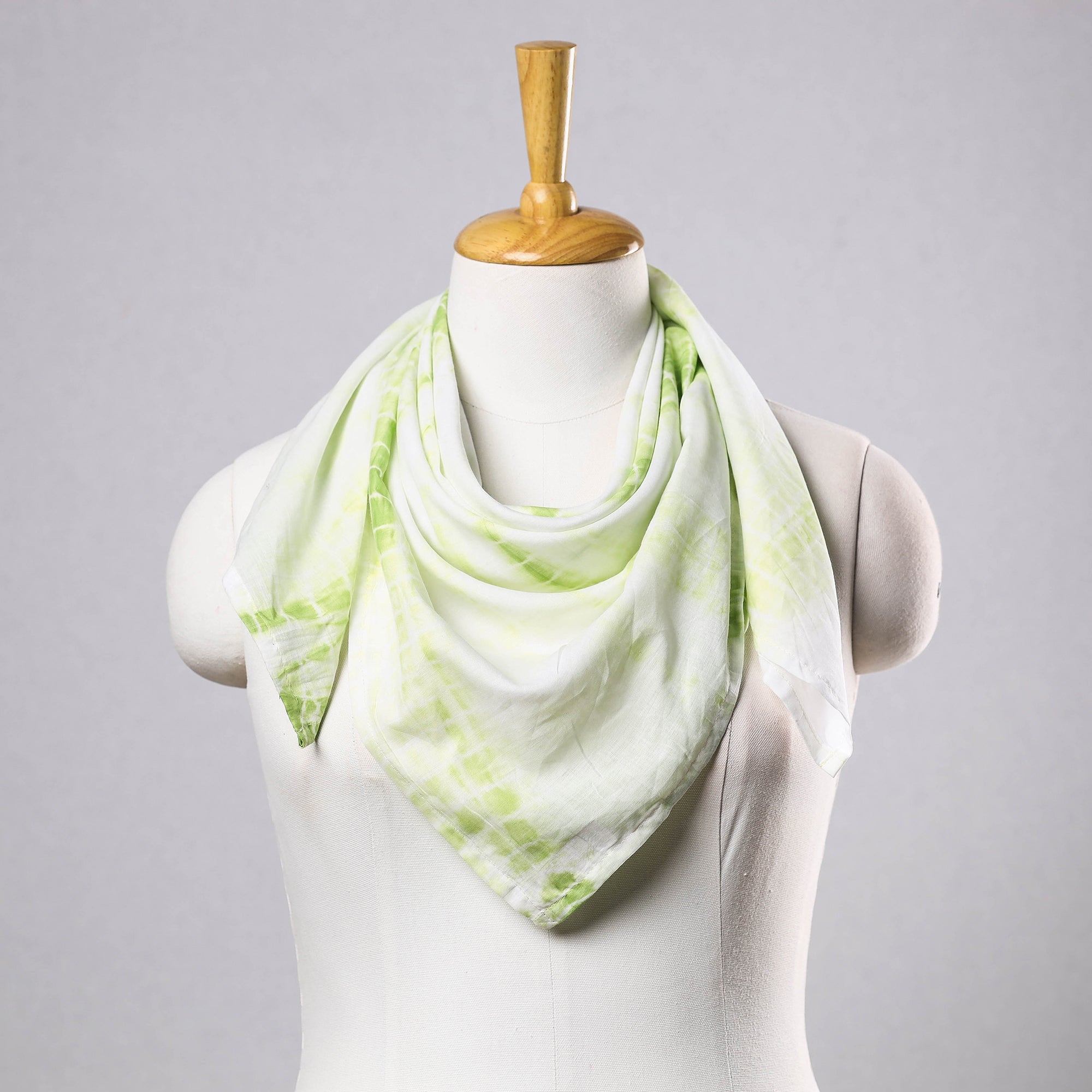 Fine quality green shibori tie-dye cotton scarf from Rajasthan. This scarf is hand dyed using shibori tie and dye technique in which the fabric is tied using clamp or stitches in the required design and the pattern is dyed. This scarf perfect for adding a touch of elegance to your outfits, or as a head-turning accent to any ensemble. Embrace the artistry of Rajasthan and experience the comfort of pure cotton in this stunning scarf.
