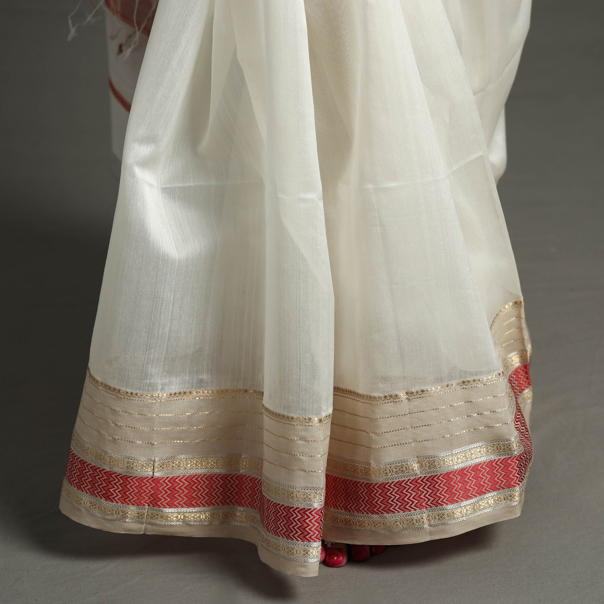 This exquisite maheshwari silk cotton handloom saree with woven zari border is skillfully handwoven in Maheshwar, a heritage town in India, using traditional techniques. The weaving traditional handloom weaving techniques passed down through generations of skilled artisans in Maheshwar. This lightweight, sheer saree is perfect for special occasions, adding a touch of grace and sophistication to your attire. Elevate your style with this exquisite piece of artistry.