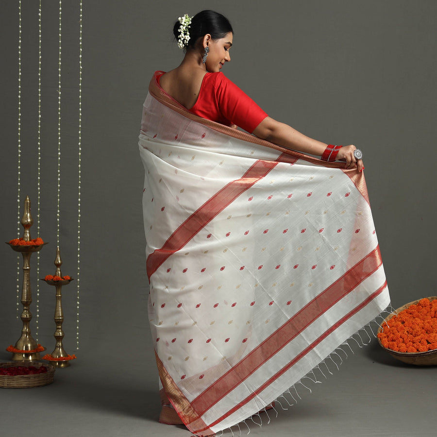 Brown - Handloom Buti Maheshwari Saree with Zari Border 43