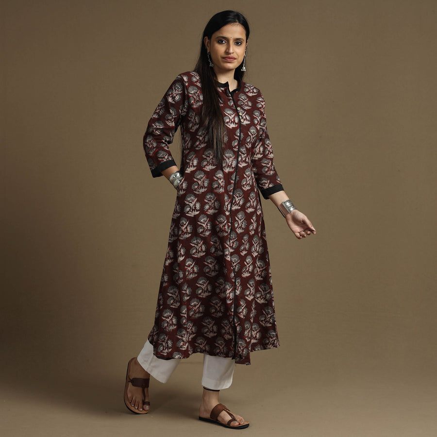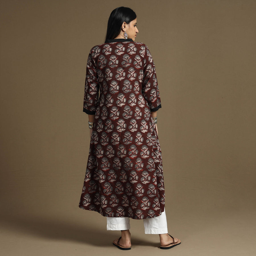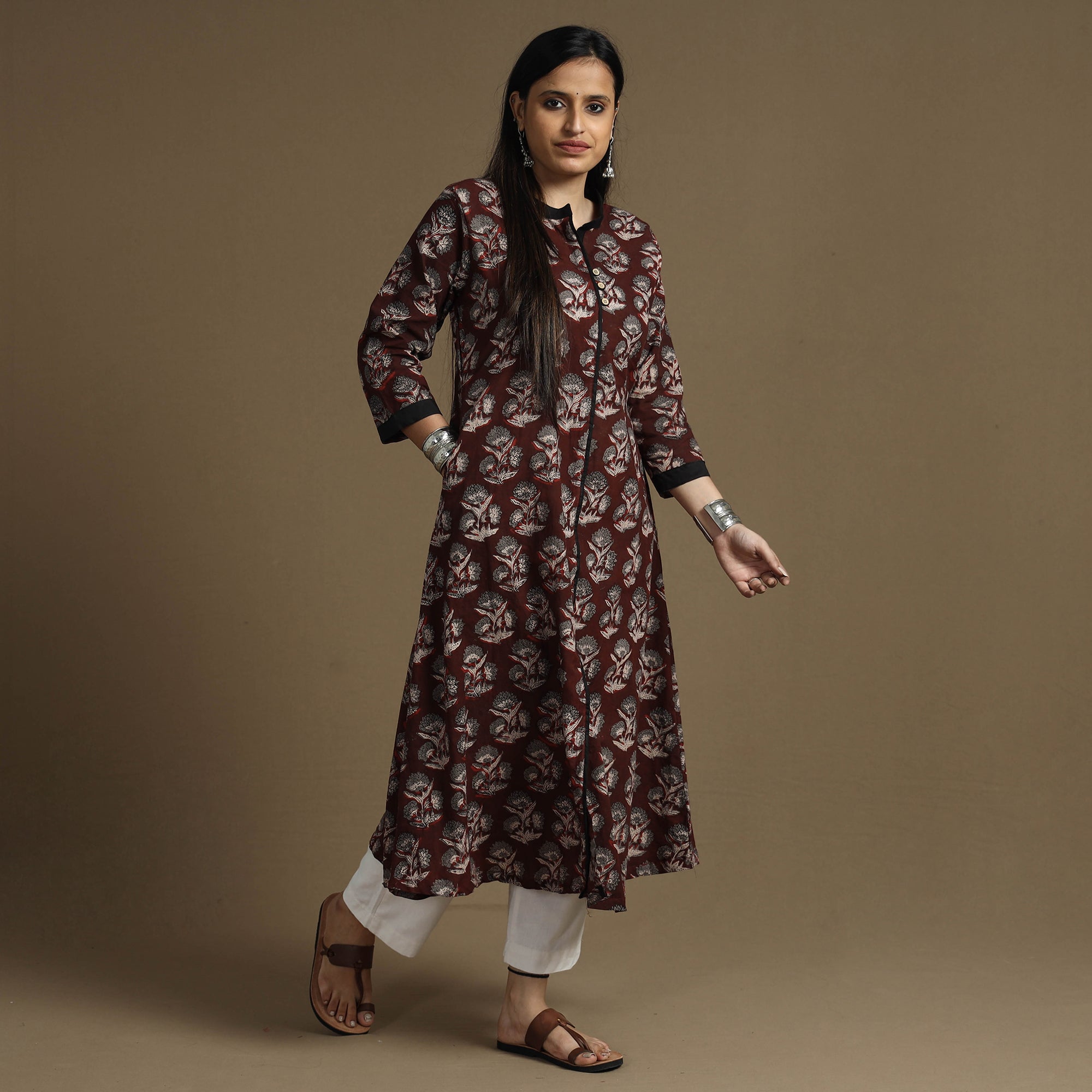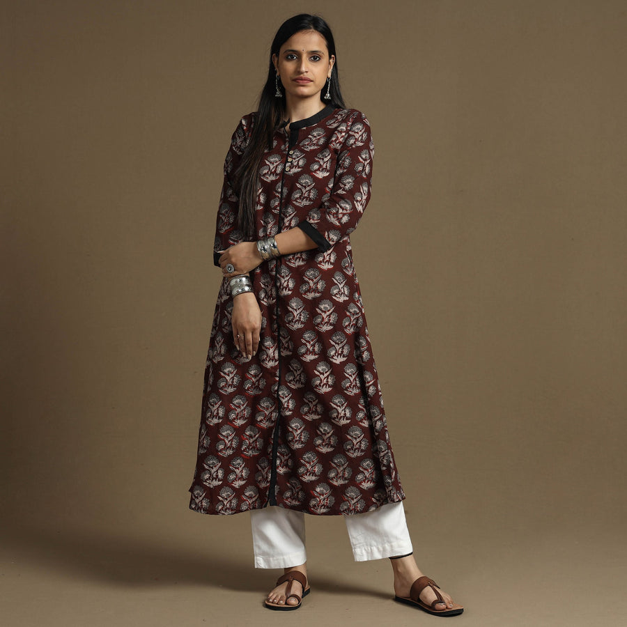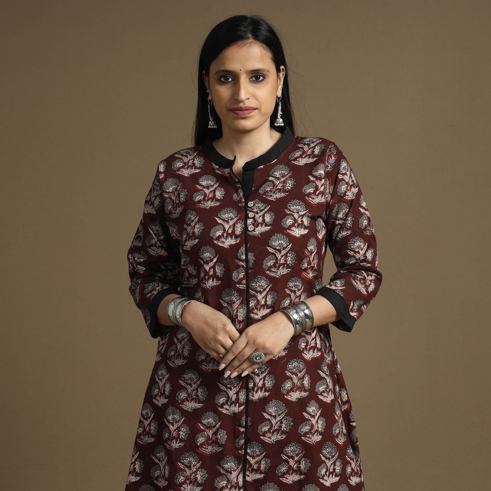 Fine quality bagru block printed cotton long kurta, made using naturally dyed cotton fabric through the traditional mud resist process by using hand carved wooden blocks practised in Bagru, Rajasthan, this kurta features intricate patterns created by hand-carved wooden blocks. With a side pocket for added convenience, this kurta is both stylish and practical. Perfect for any occasion, its lightweight cotton fabric ensures comfort all day long.