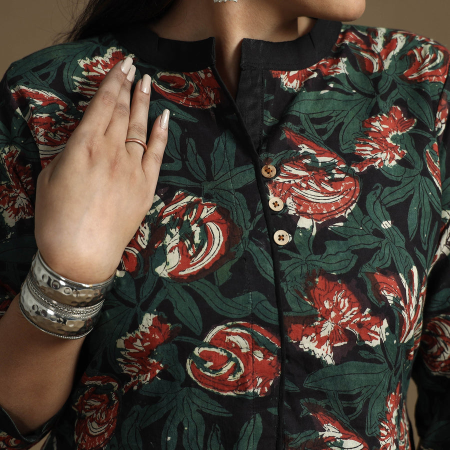 Fine quality bagru block printed cotton long kurta, made using naturally dyed cotton fabric through the traditional mud resist process by using hand carved wooden blocks practised in Bagru, Rajasthan, this kurta features intricate patterns created by hand-carved wooden blocks. With a side pocket for added convenience, this kurta is both stylish and practical. Perfect for any occasion, its lightweight cotton fabric ensures comfort all day long.