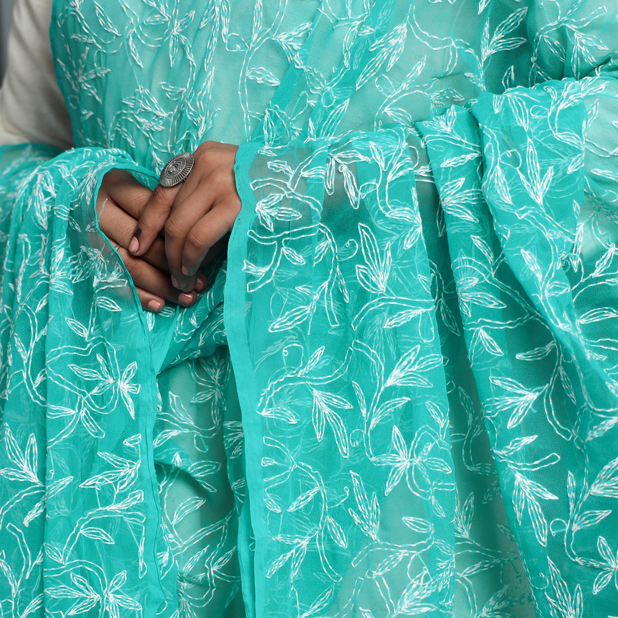 Chikankari is a popular embroidery work done with the help of a white cotton thread on fine white cotton material. It is also known as shadow work. Chikan is an extremely delicate and artfully done hand embroidery on fabrics like muslin, silk, chiffon, organza, net, etc