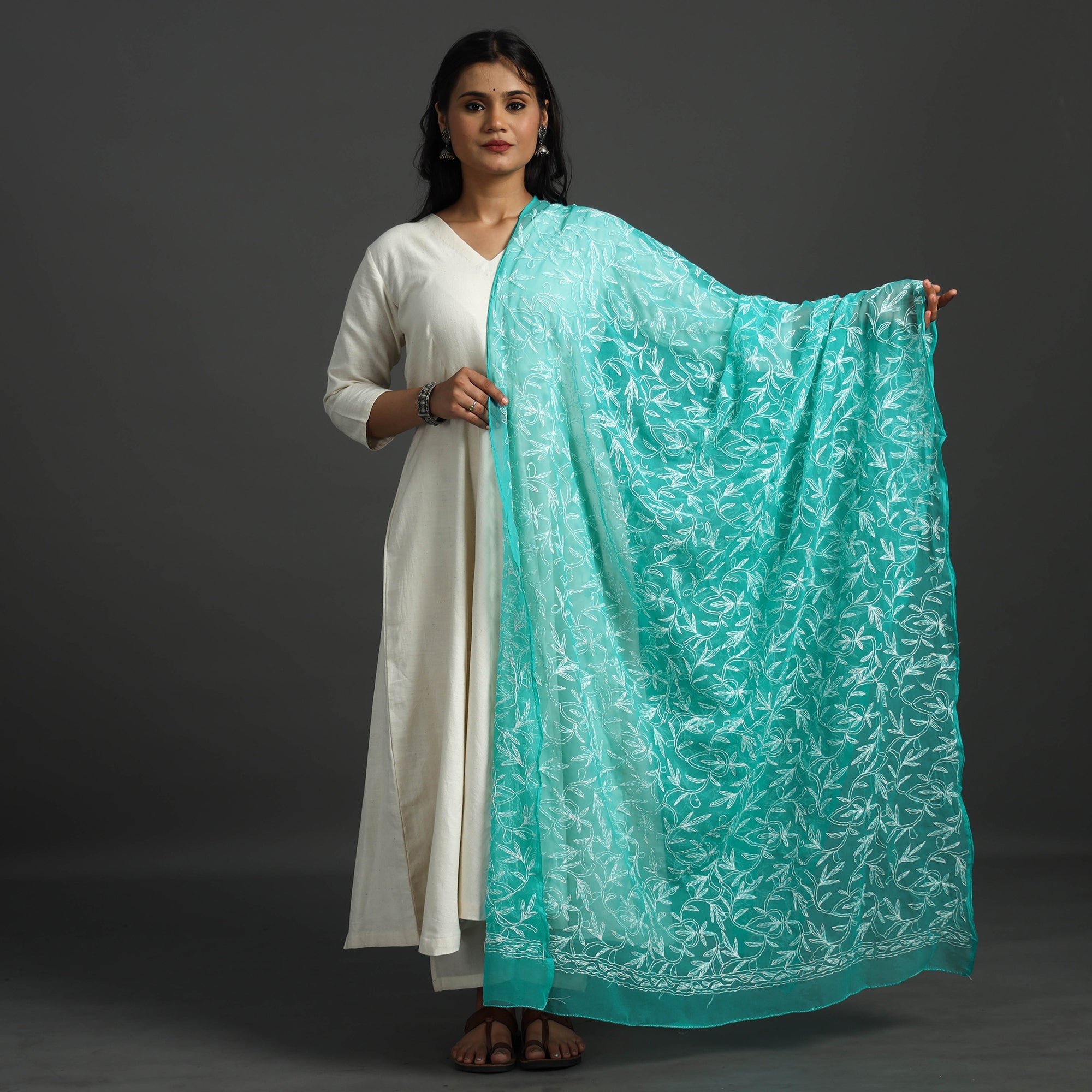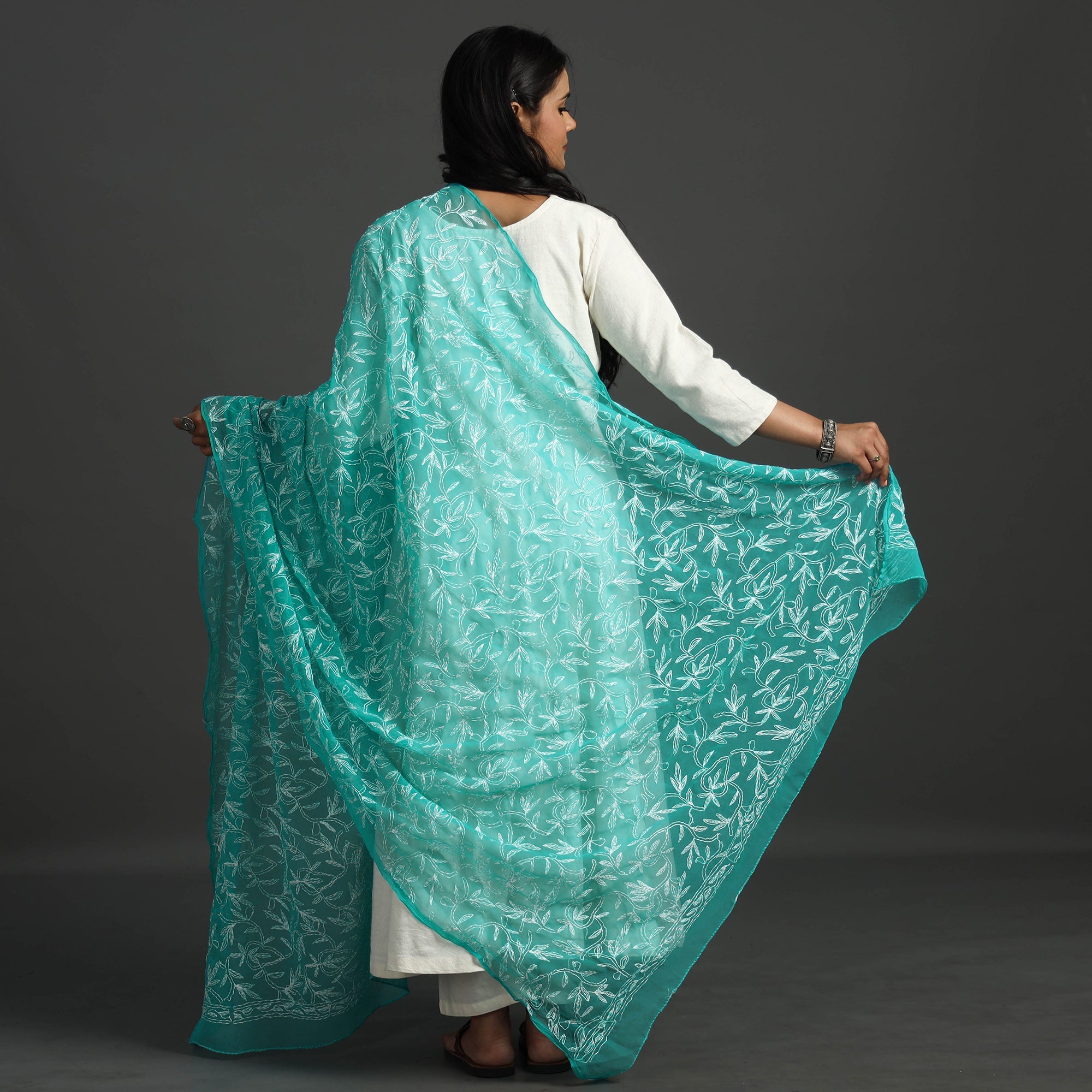 This exquisite chikankari tepchi hand embroidery georgette full jaal dupatta is skillfully crafted by the artisans from Lucknow. The chikankari embroidery technique is employed to adorn the dupatta with intricate and artful designs. Each delicate stitch is carefully handcrafted, showcasing the rich heritage of Indian embroidery. Its lightweight nature allows for effortless draping and easy movement, making it a comfortable and elegant accessory for any occasion.