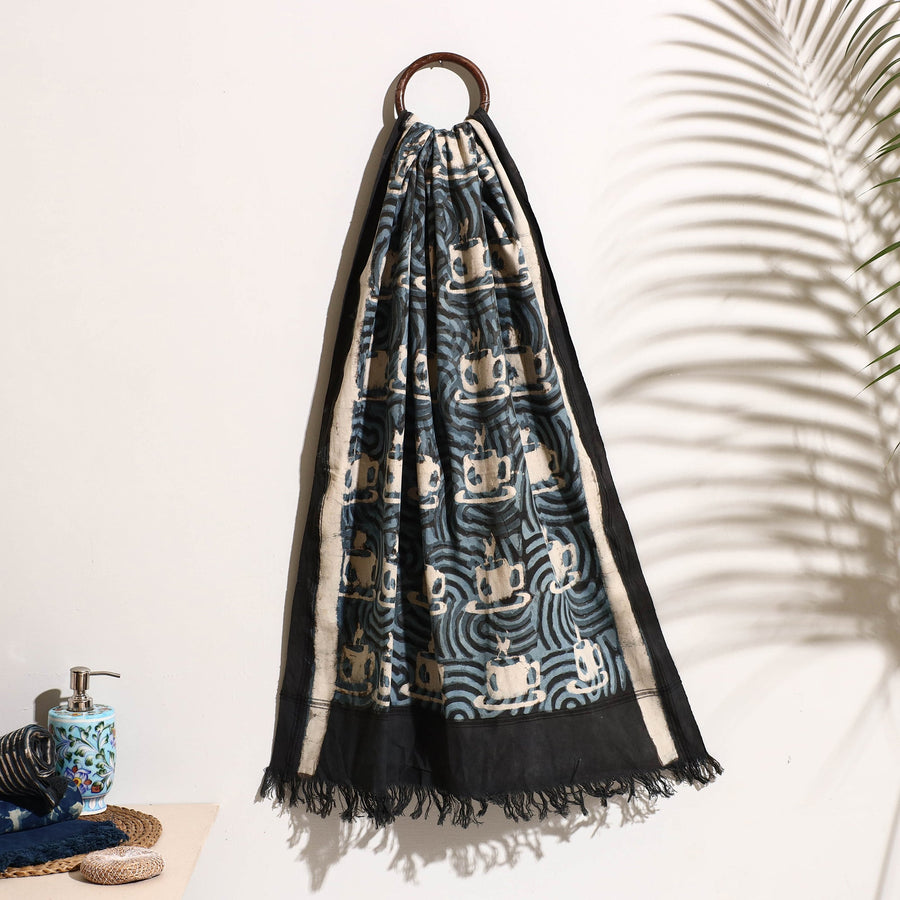 This finest black bindaas hand block printed towel is crafted from pure handloom cotton, this towel is absorbent, and eco-friendly, making it perfect for your skin and the environment. Its eco-friendly dyes are gentle on your skin, making it perfect for daily use. This towel is made using traditional hand-block printing processes and natural dyes in Kaladera, Rajasthan. Ideal for both bath and beach, this versatile towel adds a touch of artistry to your routine.
