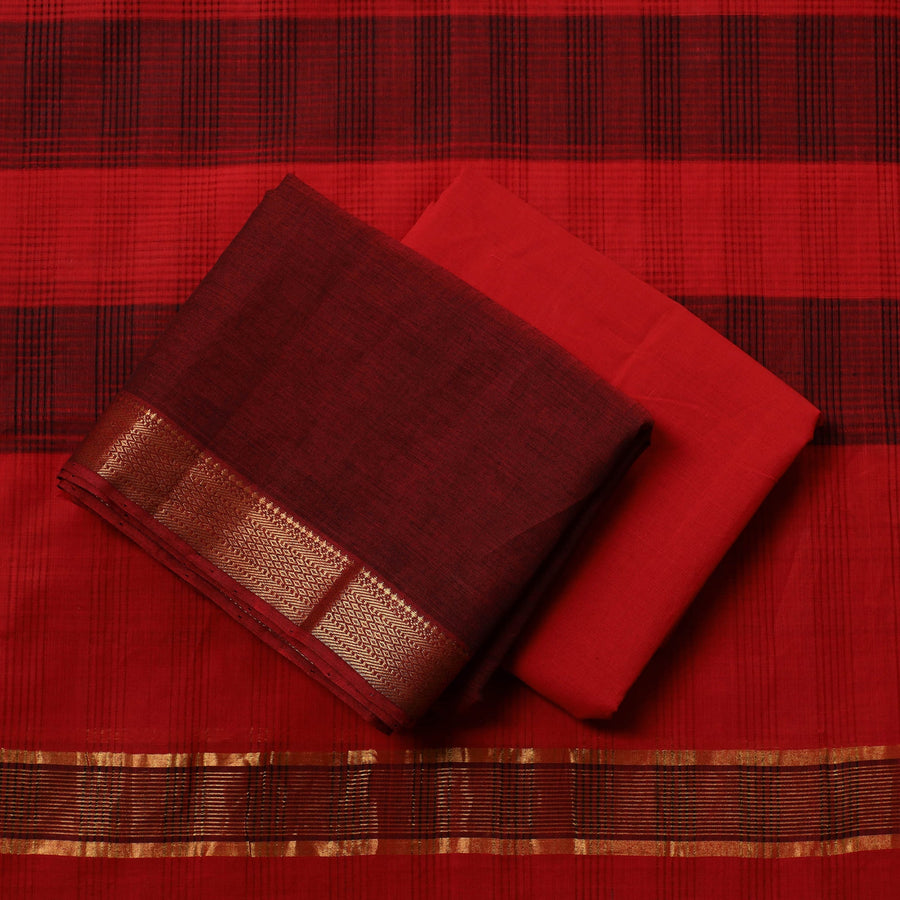 Maroon - Handloom Cotton Mangalagiri Fabric with Zari Border 26