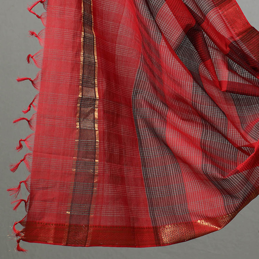 Maroon - Handloom Cotton Mangalagiri Fabric with Zari Border 07