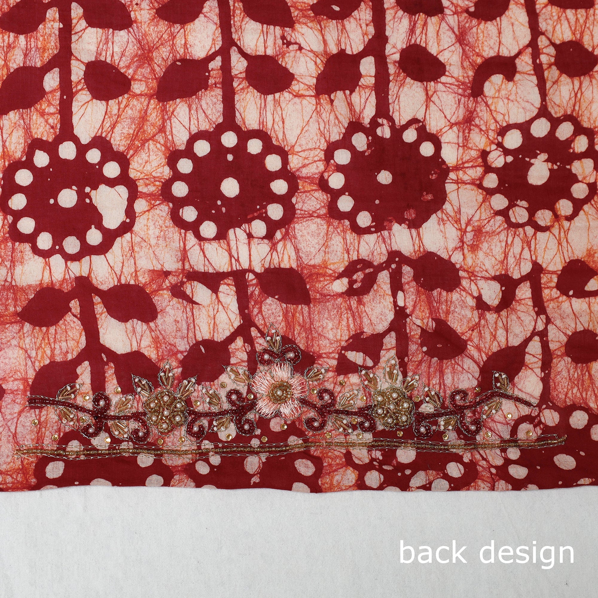 Fine quality red batik printed thread & bead work hand embroidery cotton blouse material, expertly crafted from of high-quality cotton material and adorned with traditional handmade textiles of India. This versatile mix and match blouse material is perfect to pair with any saree, adding a touch of elegance to your ensemble. Made with the finest quality materials, this blouse material ensures comfort and style, making it a must-have addition to your wardrobe.