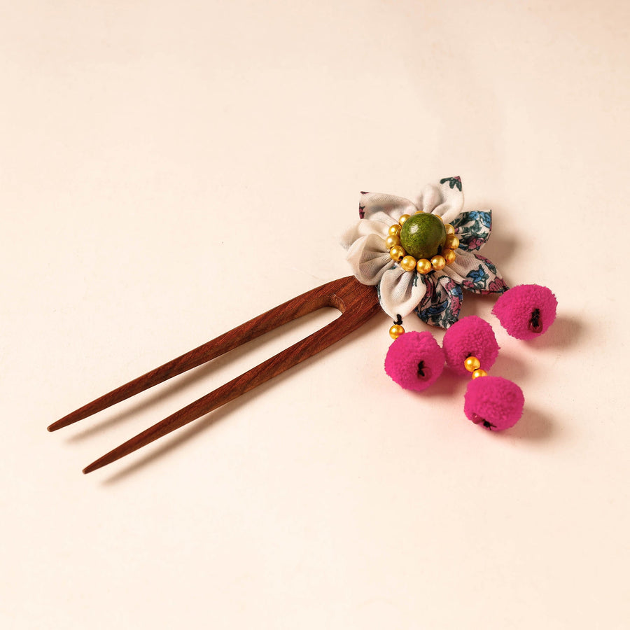 | Material | Handmade gulmohar flower wooden juda stick made from mixed fabric with katran artworks on wooden juda stick using beads, shells, and cotton threads. |