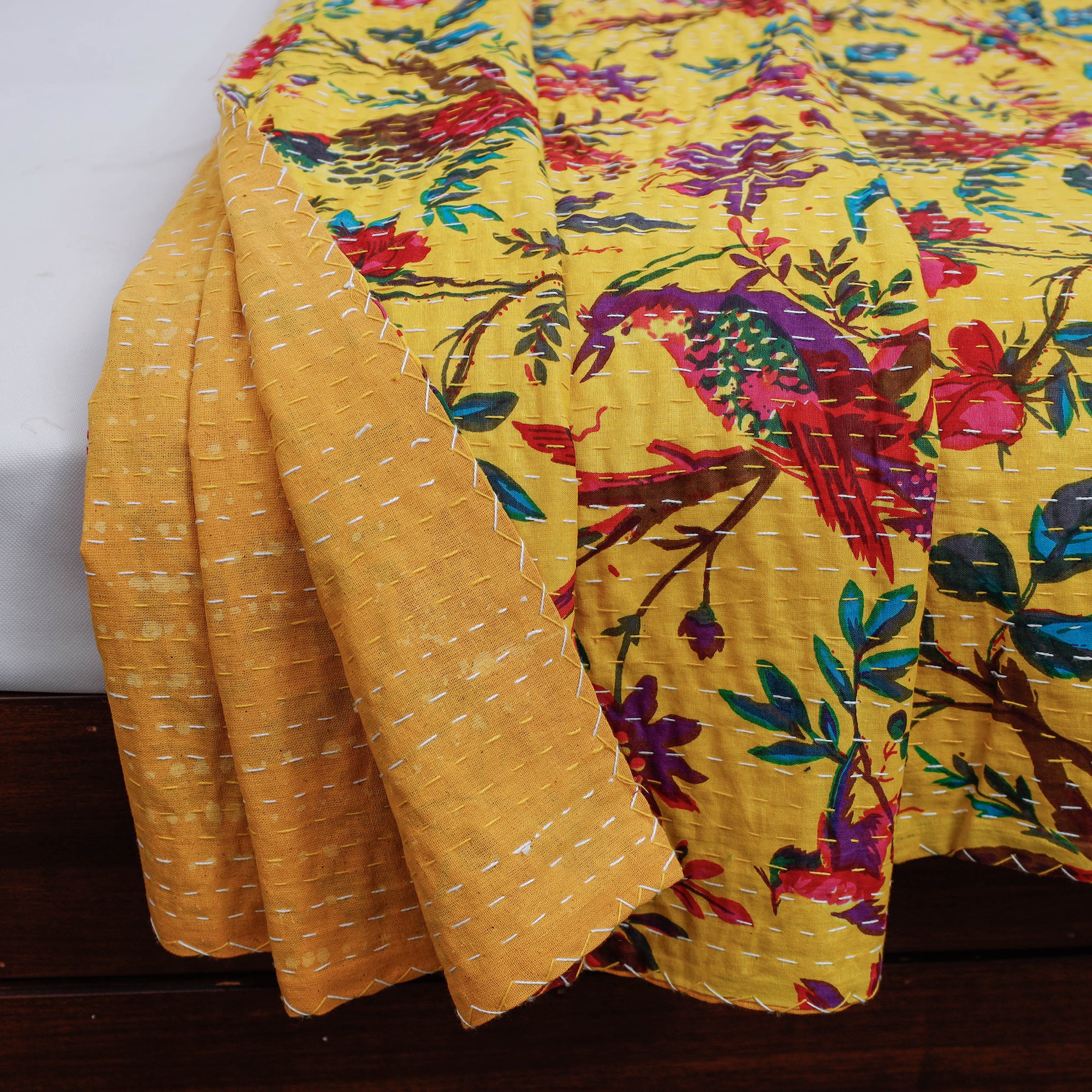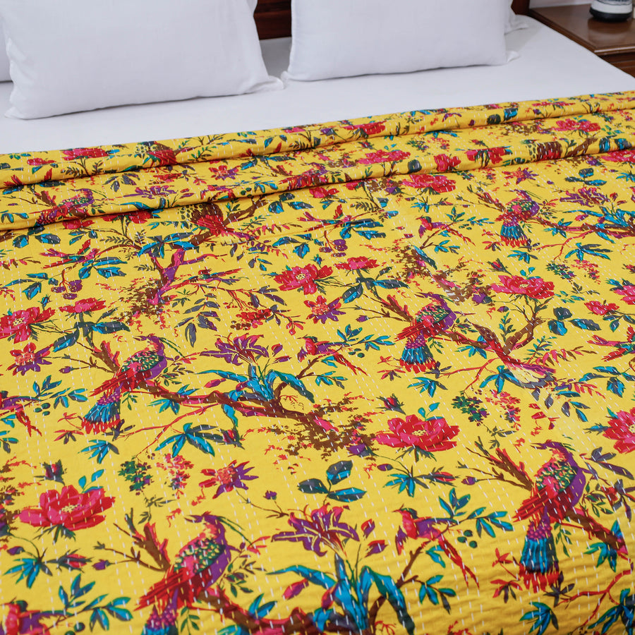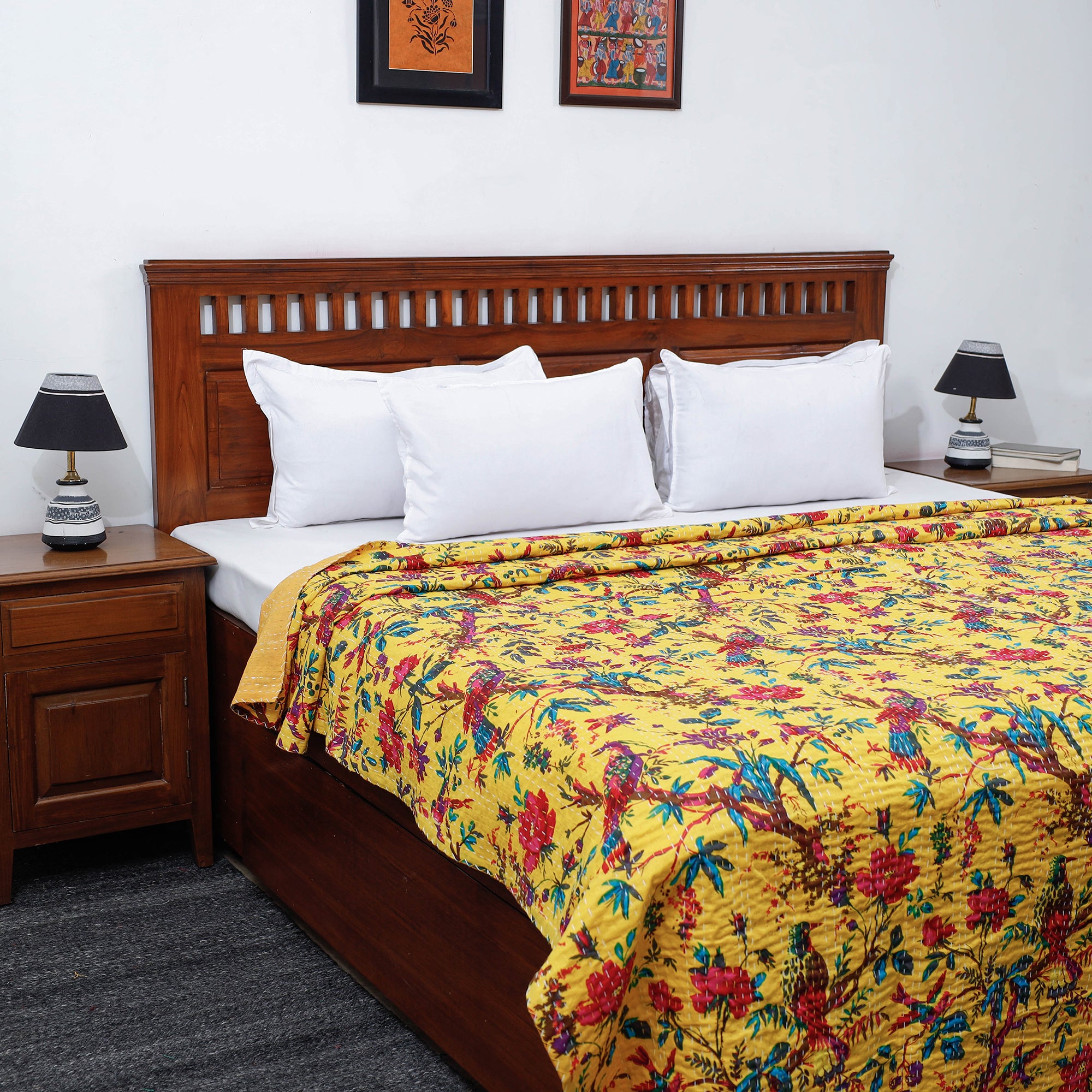 Fine quality tagai work jaipur hand block printed cotton double bedcover with made using VAT dyes through traditional process of hand block printing practised by the master artisans in Barmer, Rajasthan.