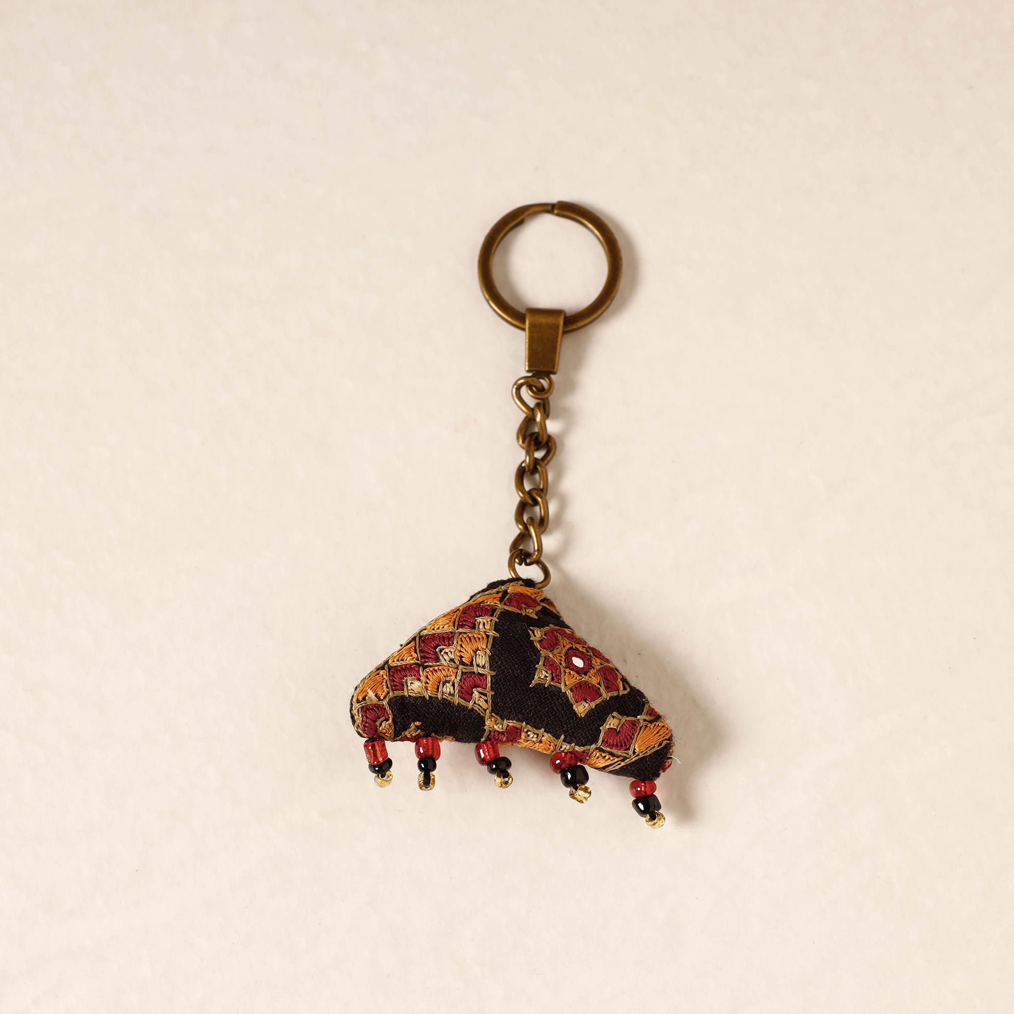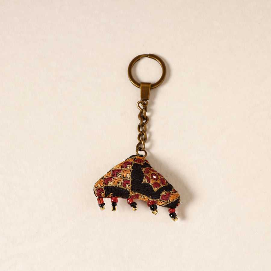 The black kutch embroidery handmade keychain is a beautiful and intricate accessory that showcases the traditional artistry of kutch, a region in India. Crafted by skilled artisans, creating a stunning and unique design. This keychain not only adds a touch of cultural elegance to your belongings but also celebrates the rich heritage of kutch craftsmanship.