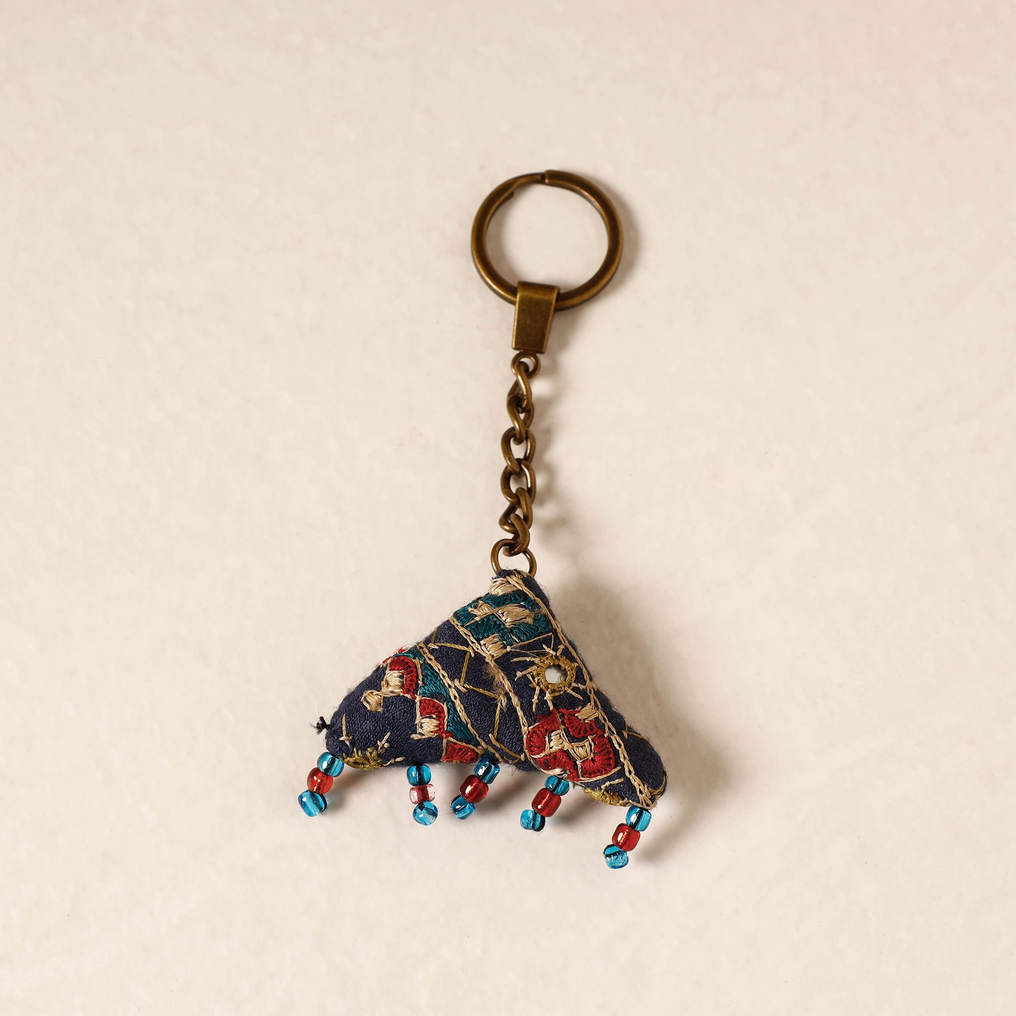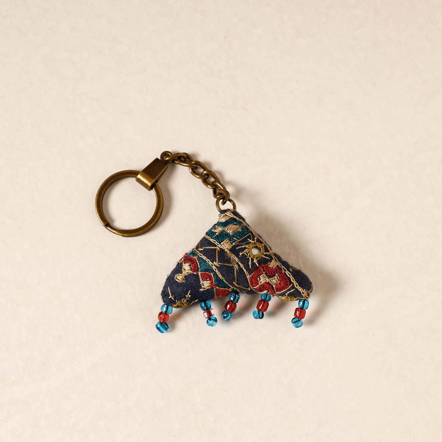 The kutch embroidery handmade keychain is a beautiful and intricate accessory that showcases the traditional artistry of kutch, a region in India. Crafted by skilled artisans, creating a stunning and unique design. This keychain not only adds a touch of cultural elegance to your belongings but also celebrates the rich heritage of kutch craftsmanship.