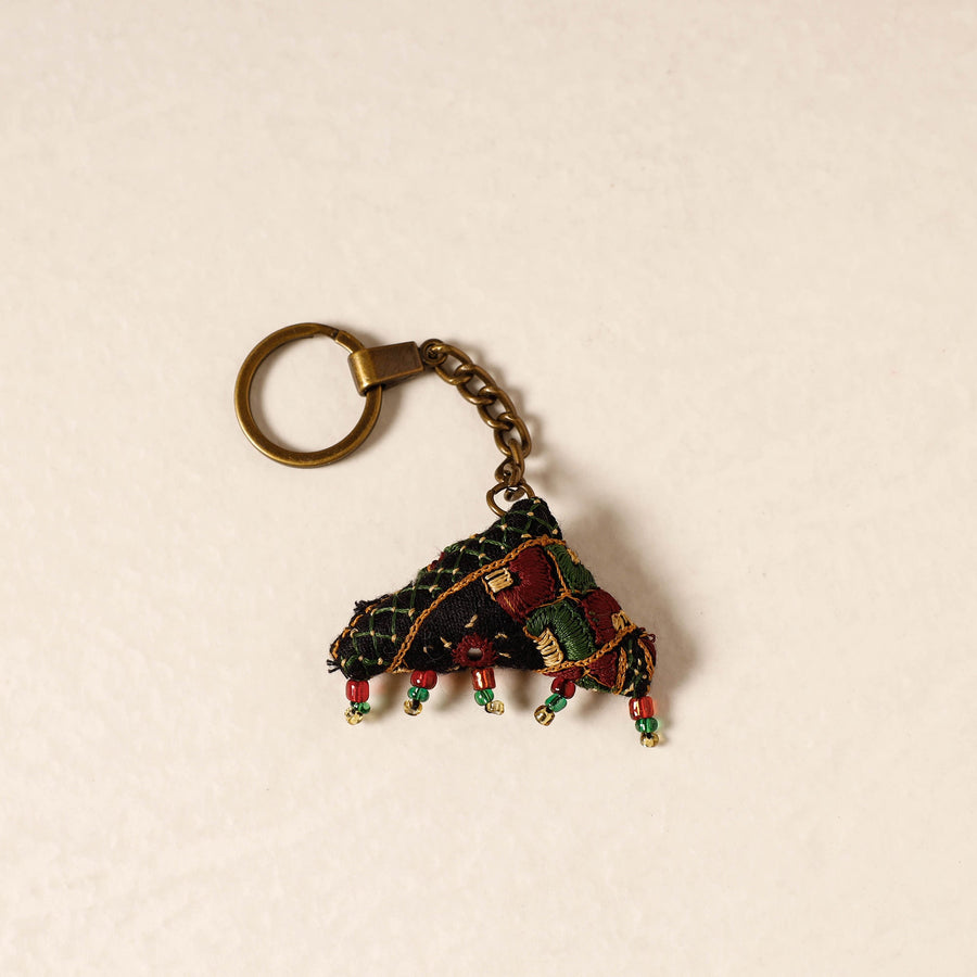 The kutch embroidery handmade keychain is a beautiful and intricate accessory that showcases the traditional artistry of kutch, a region in India. Crafted by skilled artisans, creating a stunning and unique design. This keychain not only adds a touch of cultural elegance to your belongings but also celebrates the rich heritage of kutch craftsmanship.