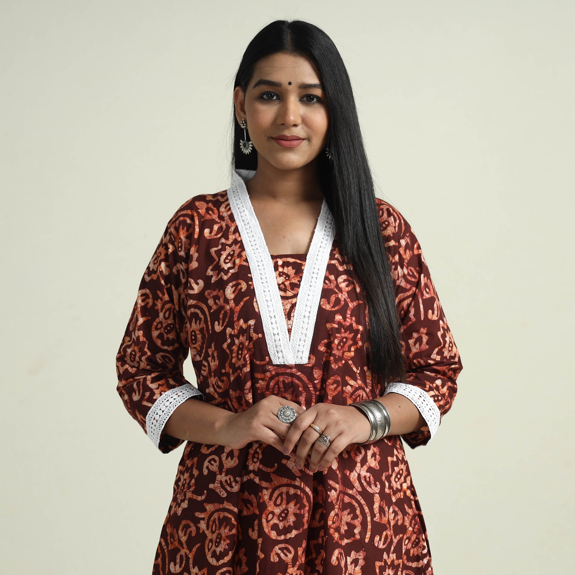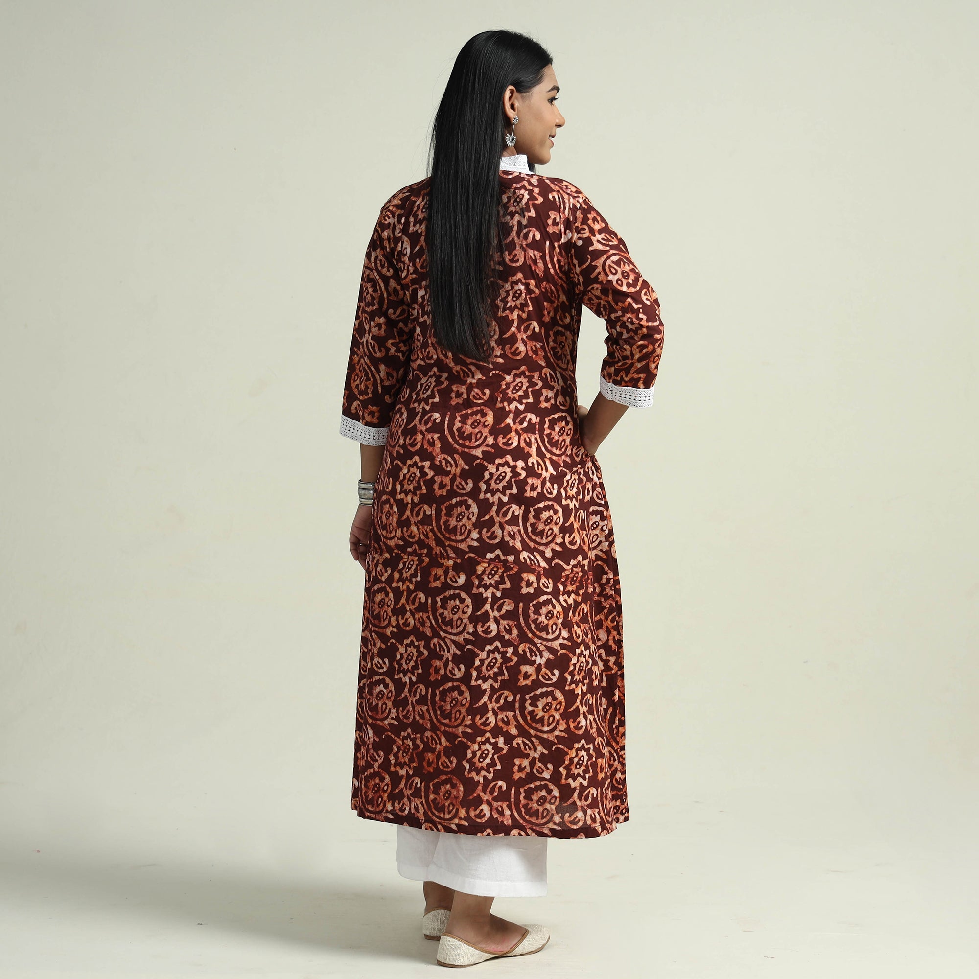 Brown - Cotton Hand Block Batik Print A-Line Kurta for women 15