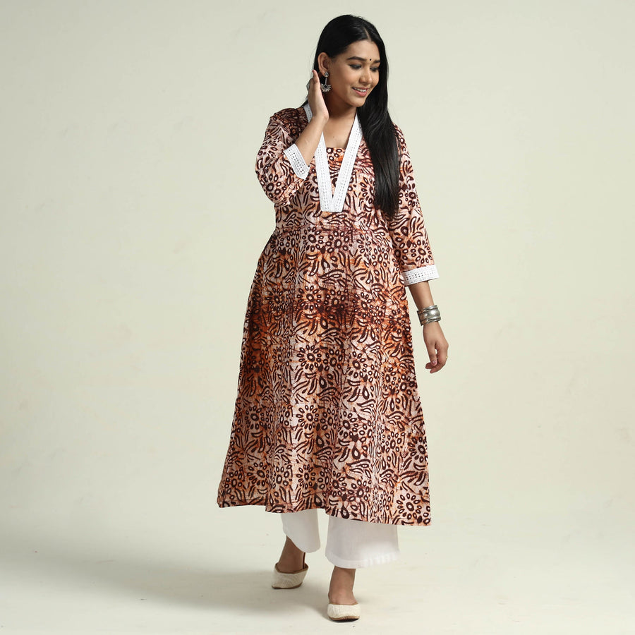Brown - Cotton Hand Block Batik Print A-Line Kurta for women 15
