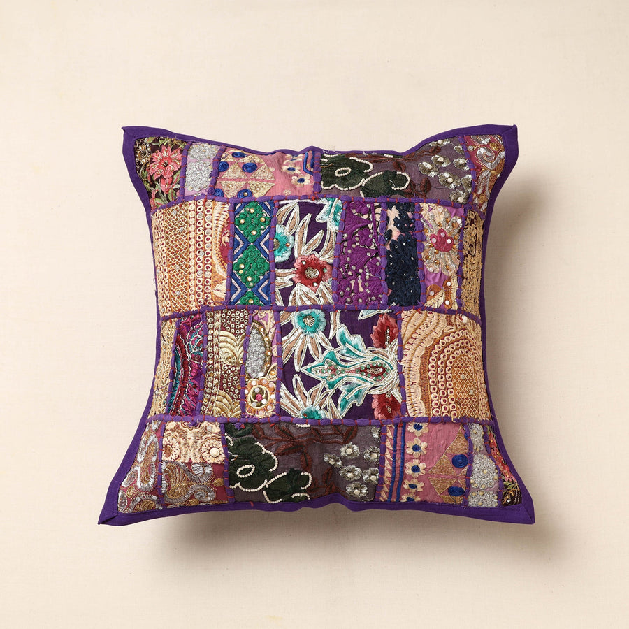 Fine quality elevate your home decor with handcrafted purple khambadiya patchwork cotton cushion cover from barmer Rajasthan. This cushion cover features thick cotton lined at the back that protects the delicate embroidery and bead work on the front. This unique piece seamlessly blends traditional artistry with modern elegance, adding a touch of Rajasthan's rich cultural heritage to your living space.