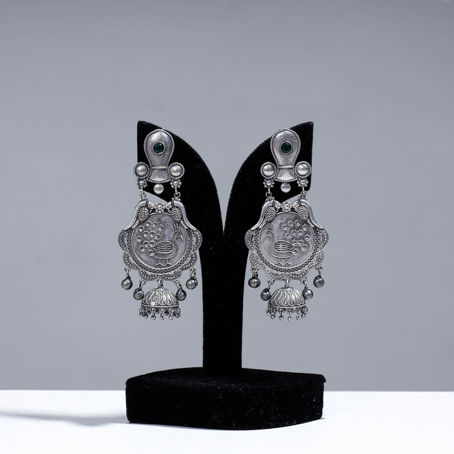 Grey antique silver finish oxidised brass base earrings, made of high-quality oxidised metal with a rustic shine effect. Combining vintage charm with contemporary elegance. Thoughtful and timeless, our jhumki earrings make the perfect gift, reflecting your appreciation for their unique style and taste.