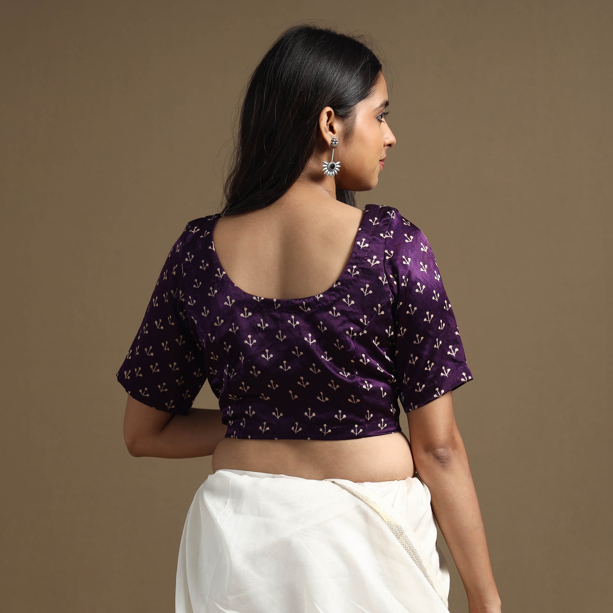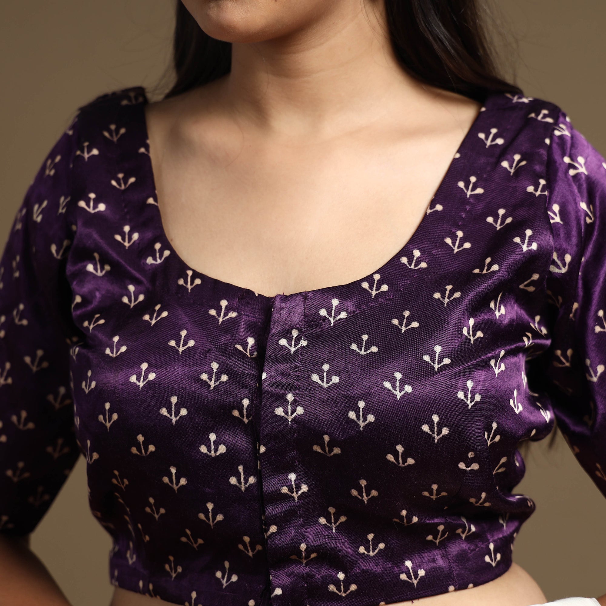 This kutch hand block-printed stitched blouse is meticulously crafted from luxurious mashru silk, known for its lustrous texture and rich sheen. It features elegant half sleeves that provide balanced coverage, making it perfect for any occasion. The hook lock adds convenience and allows for easy wear and removal. Its standout features include exquisite design and premium craftsmanship, making it a must-have addition to your wardrobe.