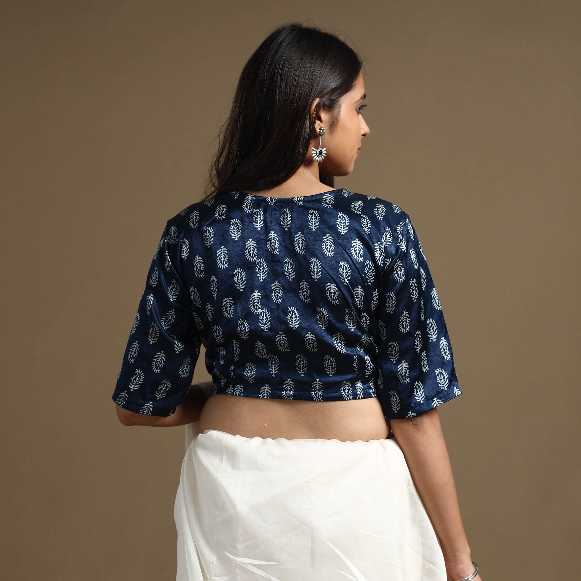 This kutch hand block-printed stitched blouse is meticulously crafted from luxurious mashru silk, known for its lustrous texture and rich sheen. It features elegant half sleeves that provide balanced coverage, making it perfect for any occasion. The hook lock adds convenience and allows for easy wear and removal. Its standout features include exquisite design and premium craftsmanship, making it a must-have addition to your wardrobe.