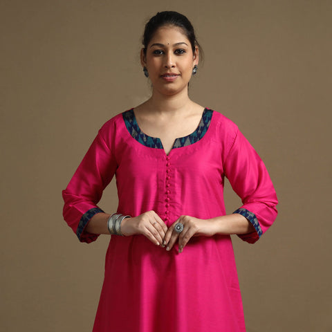 Look and feel beautiful in this uniquely designed plain solid slub silk long kurta. This long kurta is crafted from high-quality slub silk fabric, ensuring a luxurious and comfortable feel against your skin. The kurta also features a convenient one-side pocket, perfect for carrying small essentials. It's an ideal choice for both casual and festive occasions.