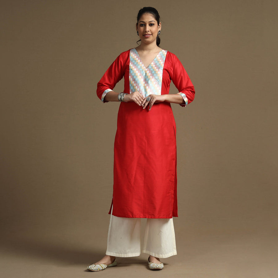 Look and feel beautiful in this uniquely designed plain solid slub silk straight kurta. This straight kurta is crafted from high-quality slub silk fabric, ensuring a luxurious and comfortable feel against your skin. The kurta also features a convenient one-side pocket, perfect for carrying small essentials. It's an ideal choice for both casual and festive occasions.