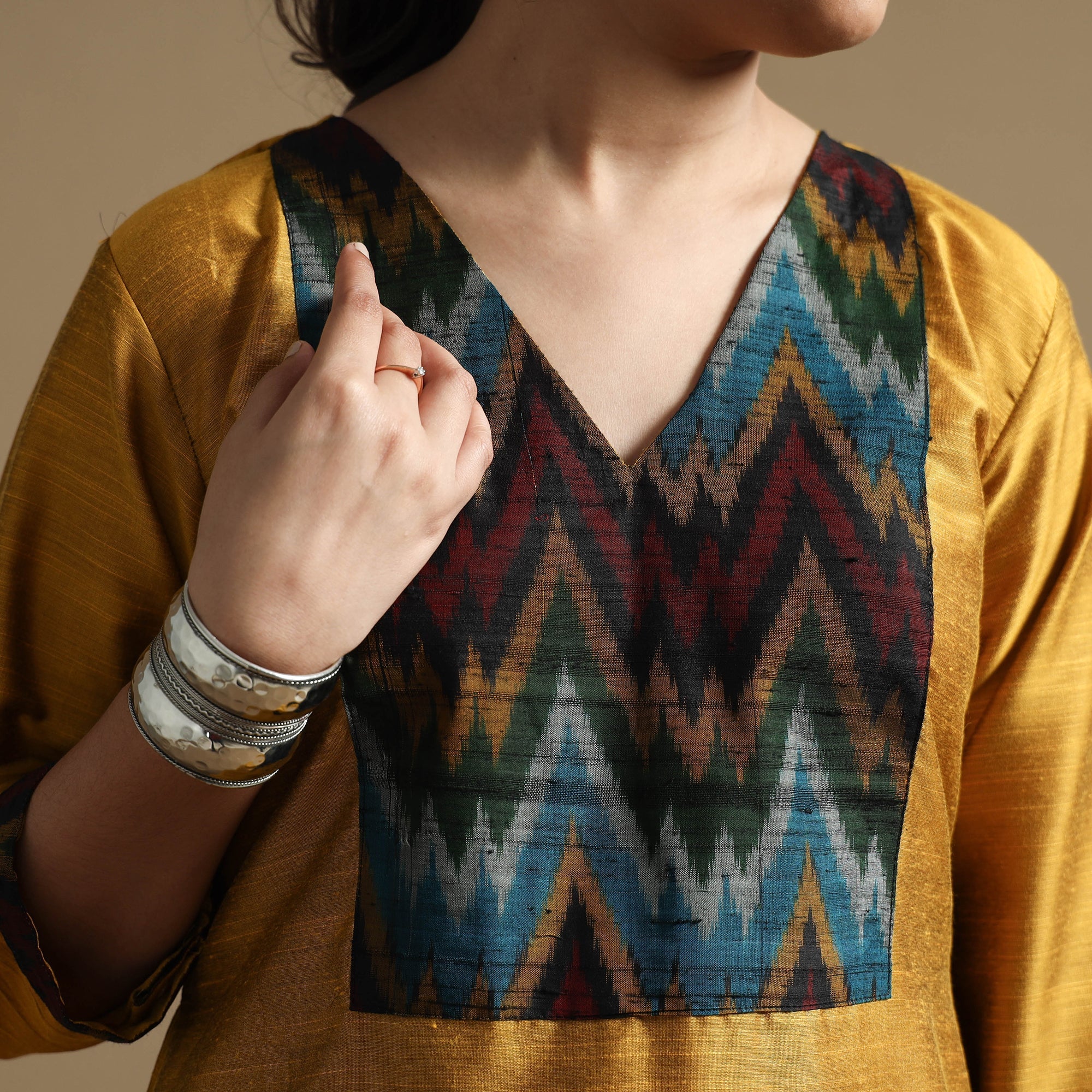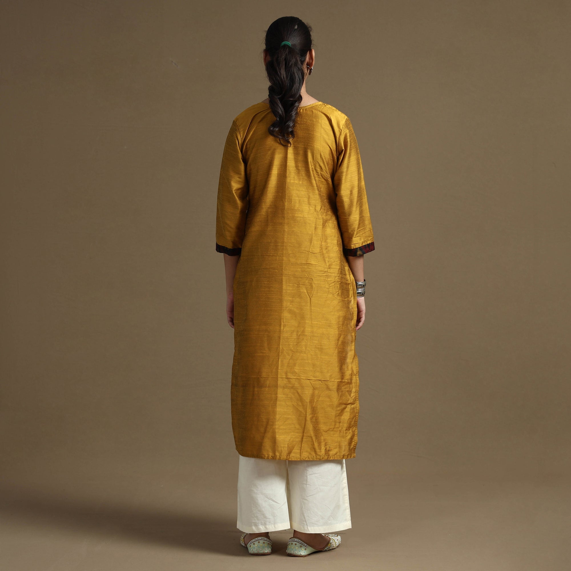 Look and feel beautiful in this uniquely designed plain solid slub silk straight kurta. This straight kurta is crafted from high-quality slub silk fabric, ensuring a luxurious and comfortable feel against your skin. The kurta also features a convenient one-side pocket, perfect for carrying small essentials. It's an ideal choice for both casual and festive occasions.