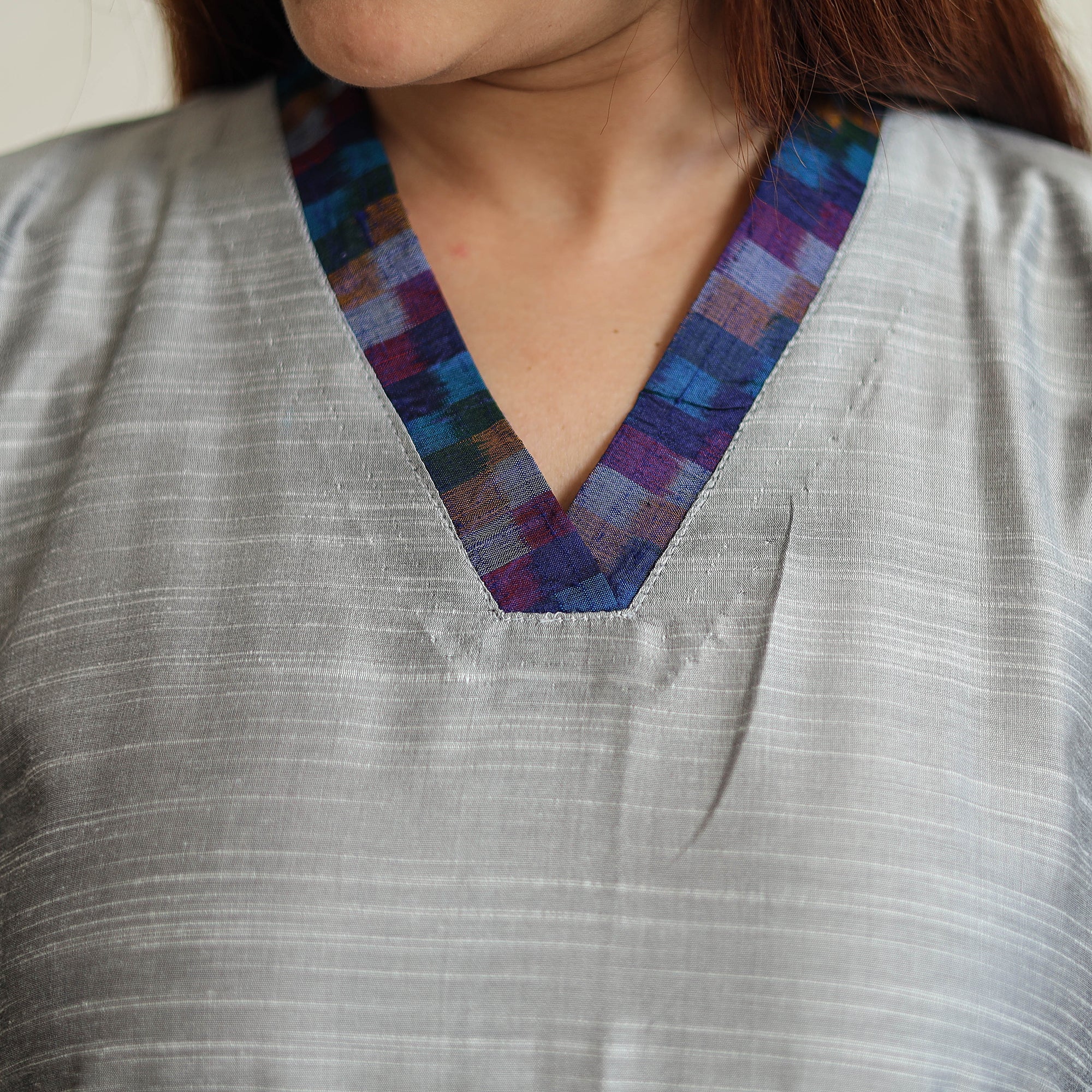 Look and feel beautiful in this uniquely designed plain solid slub silk long kurta. This long kurta is crafted from high-quality slub silk fabric, ensuring a luxurious and comfortable feel against your skin. The kurta also features a convenient one-side pocket, perfect for carrying small essentials. It's an ideal choice for both casual and festive occasions.