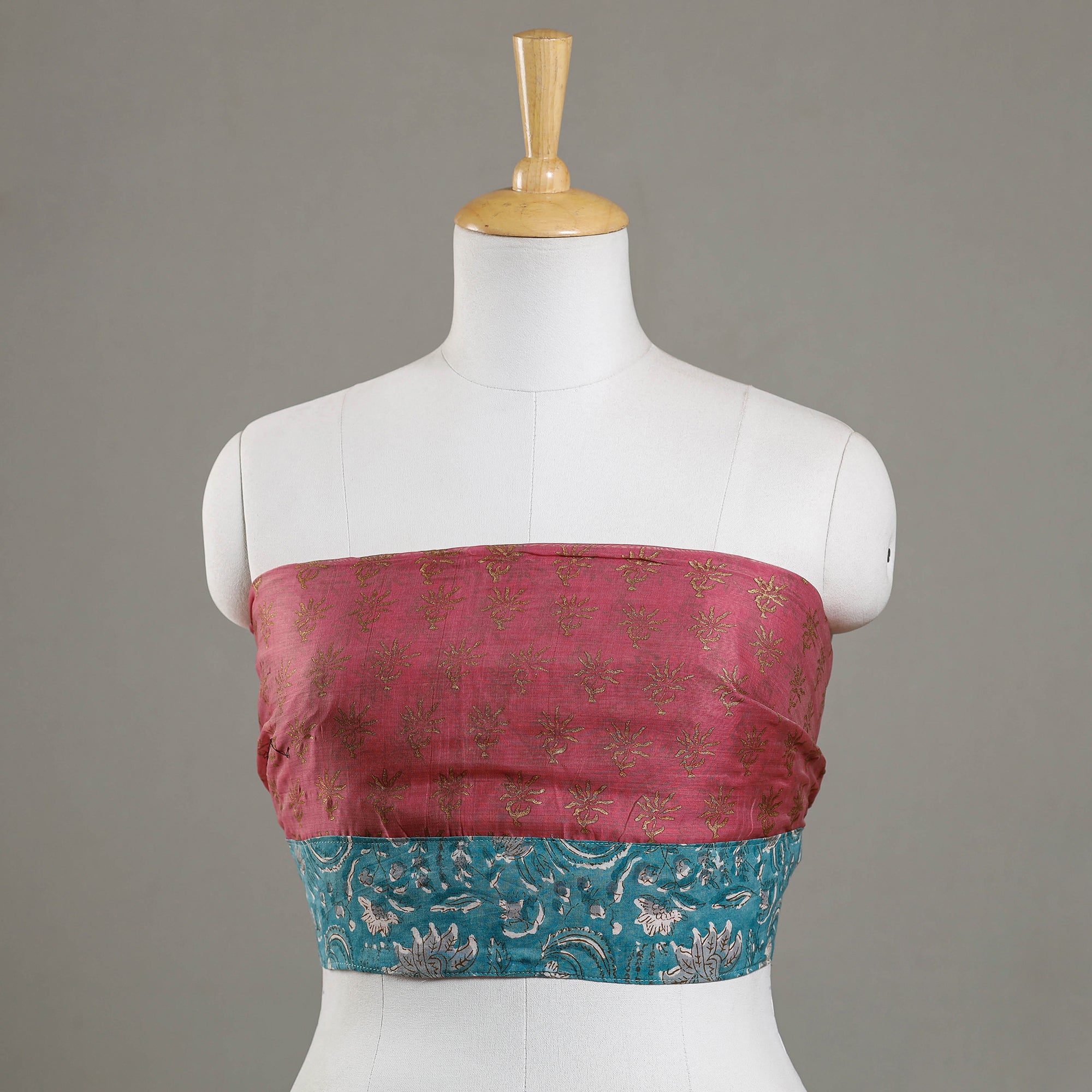 Fine quality sanganeri gold block printed chanderi silk blouse material crafted from of high-quality silk material and adorned with traditional handmade textiles of India. This mix and match blouse material is perfect to pair with any saree, adding a touch of elegance to your ensemble. Made with the finest quality materials, this blouse material ensures comfort and style, making it a must-have addition to your wardrobe.