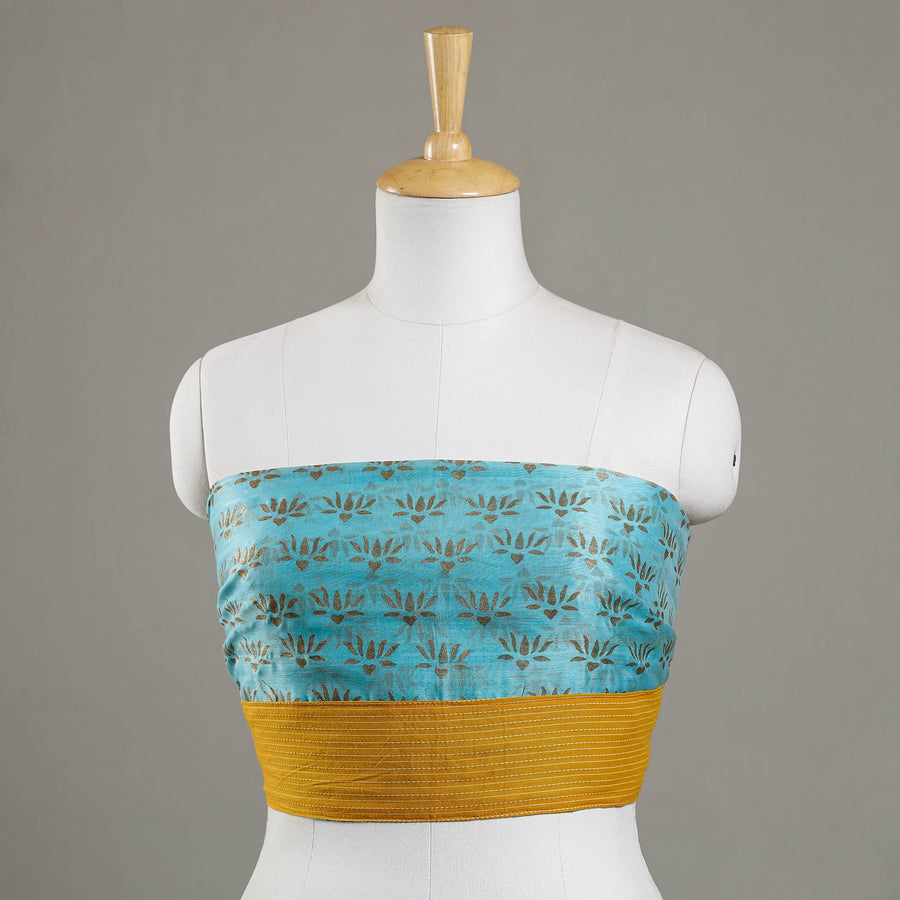 Fine quality sanganeri gold block printed chanderi silk blouse material crafted from of high-quality silk material and adorned with traditional handmade textiles of India. This mix and match blouse material is perfect to pair with any saree, adding a touch of elegance to your ensemble. Made with the finest quality materials, this blouse material ensures comfort and style, making it a must-have addition to your wardrobe.