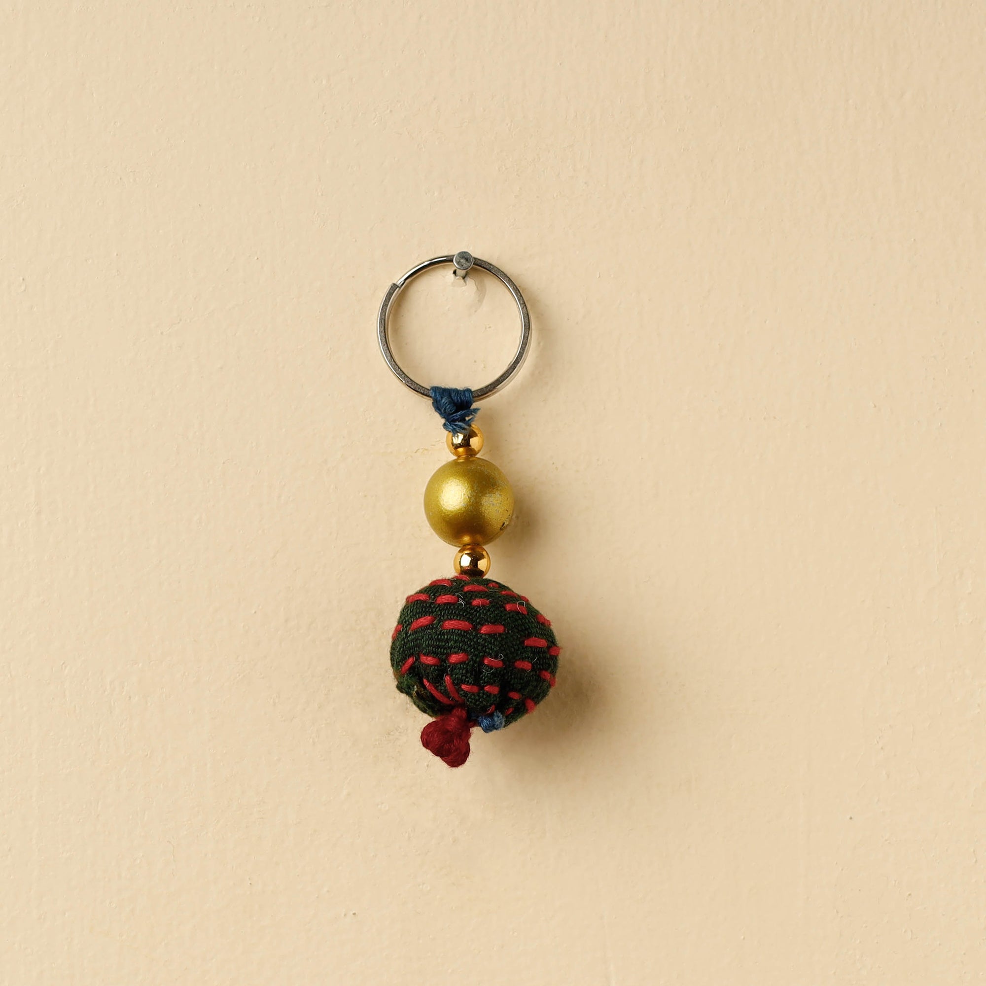 Elevate your style with our exquisite mirror and thread work green banjara embroidery keychain handcrafted by the tribal artisans of Hampi, Karnataka. Made from cotton fabric, this keychain not only adds a touch of cultural elegance to your belongings but also keeps your keys secure in style.