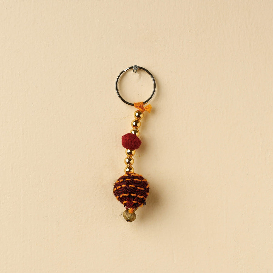 Elevate your style with our exquisite mirror and thread work red banjara embroidery keychain handcrafted by the tribal artisans of Hampi, Karnataka. Made from cotton fabric, this keychain not only adds a touch of cultural elegance to your belongings but also keeps your keys secure in style.