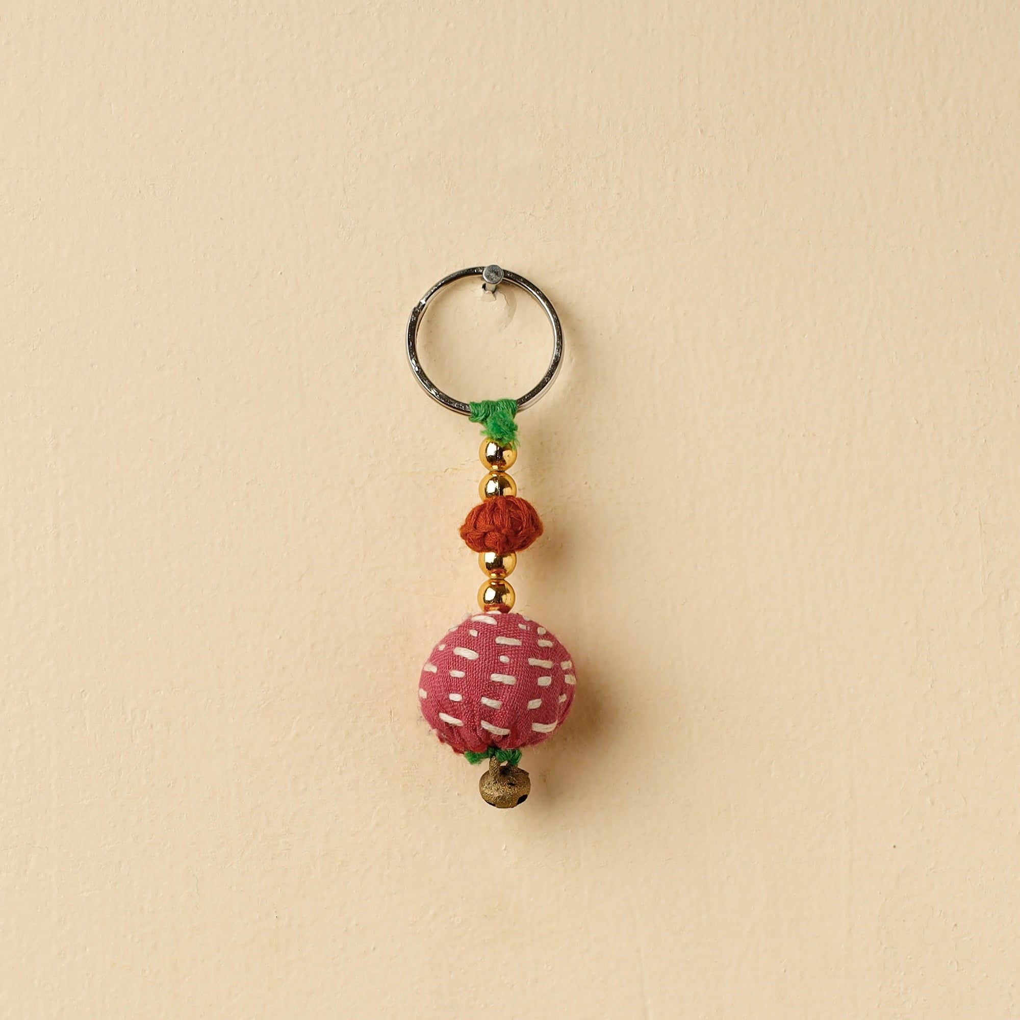 Elevate your style with our exquisite mirror and thread work red banjara embroidery keychain handcrafted by the tribal artisans of Hampi, Karnataka. Made from cotton fabric, this keychain not only adds a touch of cultural elegance to your belongings but also keeps your keys secure in style.