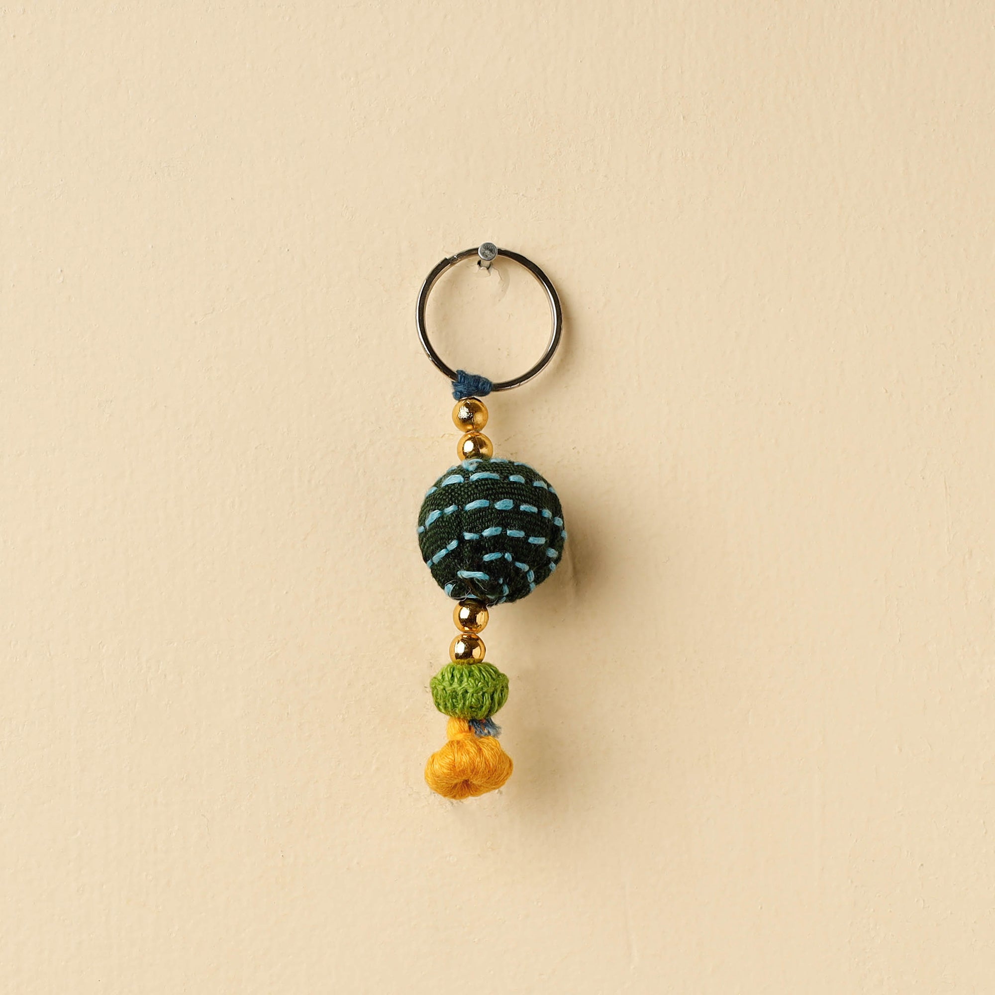 Elevate your style with our exquisite mirror and thread work green banjara embroidery keychain handcrafted by the tribal artisans of Hampi, Karnataka. Made from cotton fabric, this keychain not only adds a touch of cultural elegance to your belongings but also keeps your keys secure in style.