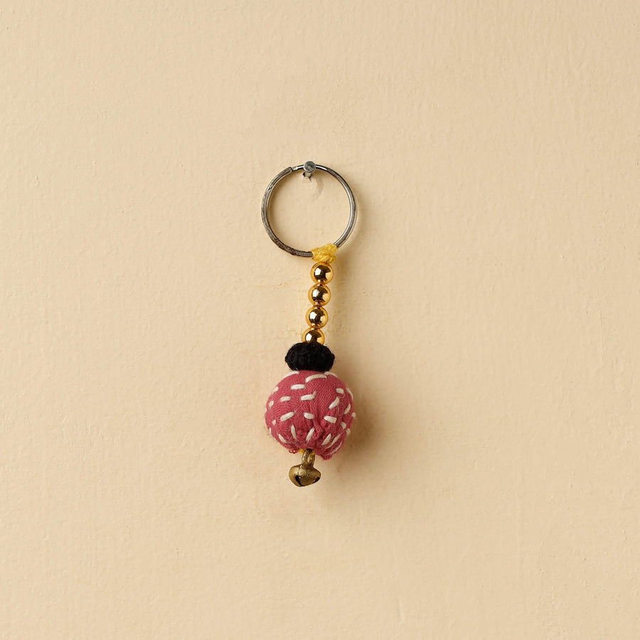 Elevate your style with our exquisite mirror and thread work red banjara embroidery keychain handcrafted by the tribal artisans of Hampi, Karnataka. Made from cotton fabric, this keychain not only adds a touch of cultural elegance to your belongings but also keeps your keys secure in style.