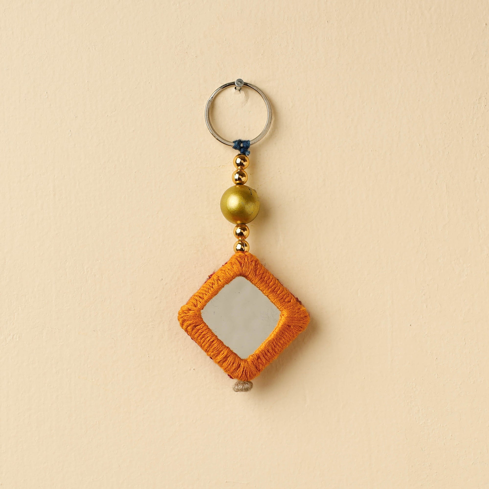 Elevate your style with our exquisite mirror and thread work orange banjara embroidery keychain handcrafted by the tribal artisans of Hampi, Karnataka. Made from cotton fabric, this keychain not only adds a touch of cultural elegance to your belongings but also keeps your keys secure in style.