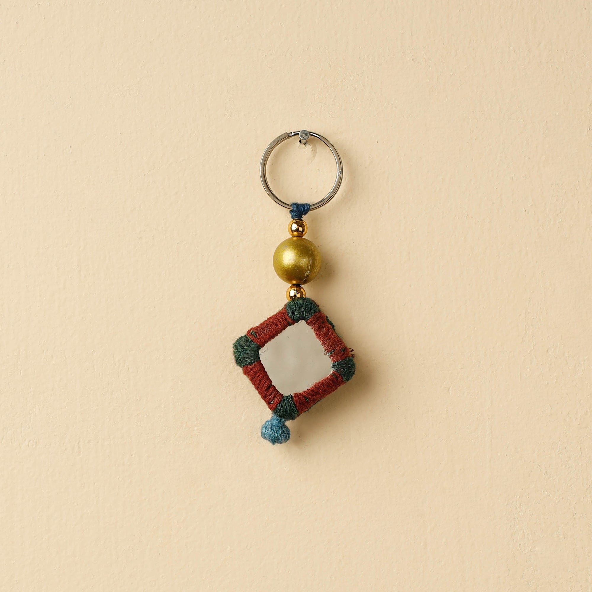 Elevate your style with our exquisite mirror and thread work red banjara embroidery keychain handcrafted by the tribal artisans of Hampi, Karnataka. Made from cotton fabric, this keychain not only adds a touch of cultural elegance to your belongings but also keeps your keys secure in style.
