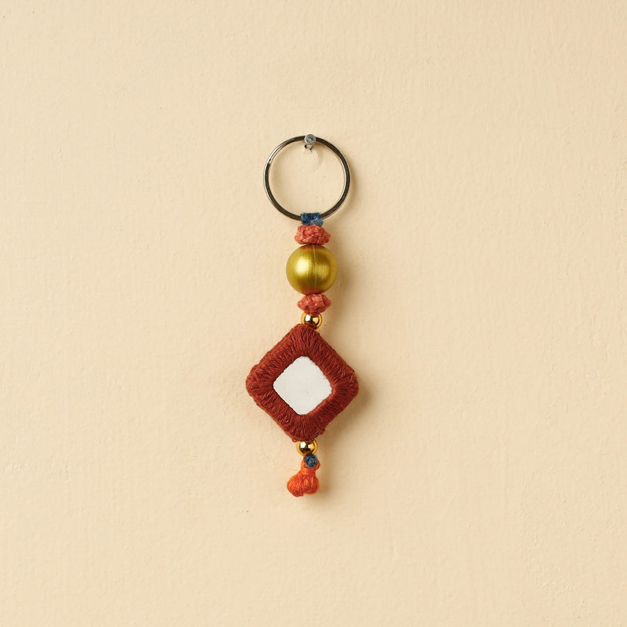 Elevate your style with our exquisite mirror and thread work red banjara embroidery keychain handcrafted by the tribal artisans of Hampi, Karnataka. Made from cotton fabric, this keychain not only adds a touch of cultural elegance to your belongings but also keeps your keys secure in style.