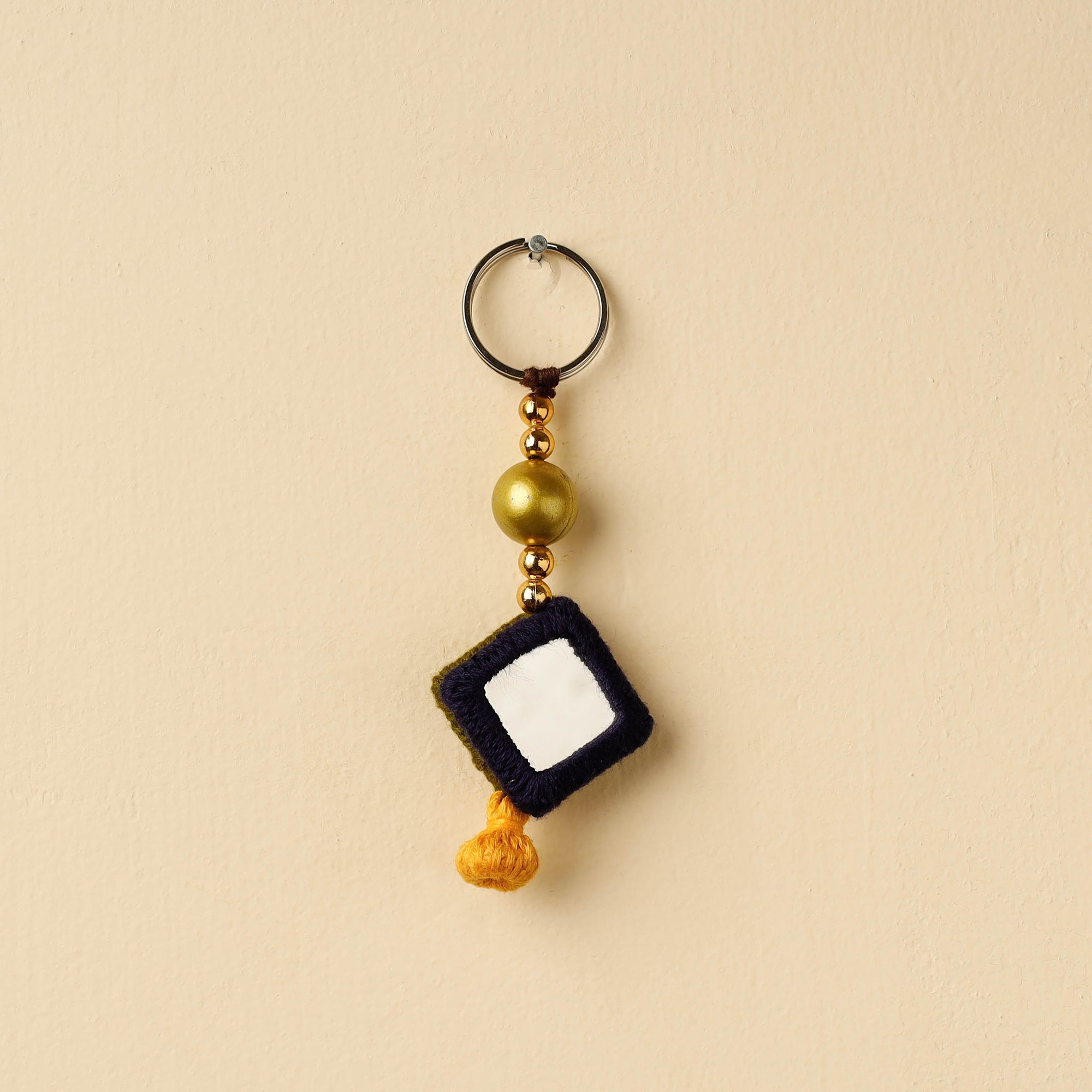 Elevate your style with our exquisite mirror and thread work blue banjara embroidery keychain handcrafted by the tribal artisans of Hampi, Karnataka. Made from cotton fabric, this keychain not only adds a touch of cultural elegance to your belongings but also keeps your keys secure in style.
