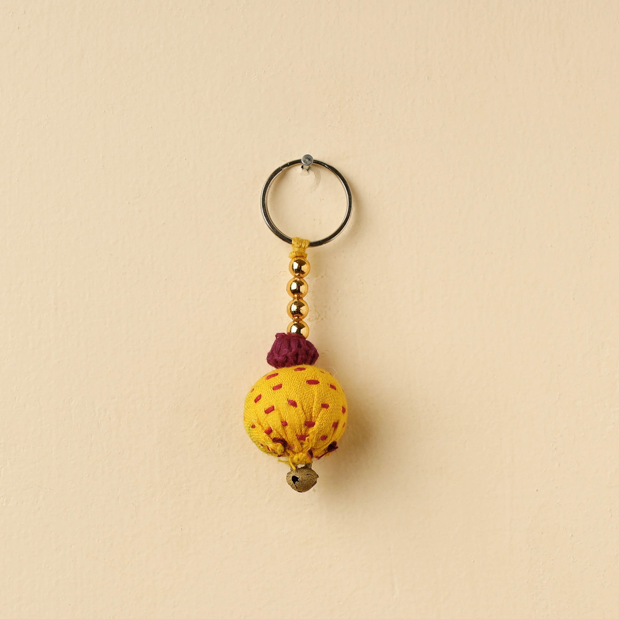Elevate your style with our exquisite mirror and thread work yellow banjara embroidery keychain handcrafted by the tribal artisans of Hampi, Karnataka. Made from cotton fabric, this keychain not only adds a touch of cultural elegance to your belongings but also keeps your keys secure in style.
